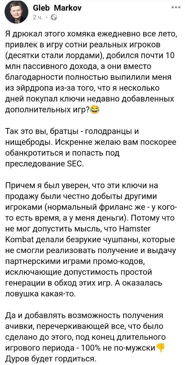 Подождите, АХХАХАХАХАХА, а как инфоцыгане рассчитали капитализацию хамстера для скота?) Премаркет цена умножить на количество монет?))) Ничего дебильнее и представить нельзя Особенно забавно осознавать тот факт что щас школьнички обижаются что получат всего 400$ за свои фантики вместо ожидаемых миллионов, но в реальности они даже ссаный доллар не смогут вывести.