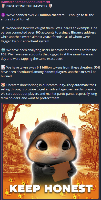 🐹 Мошенникам не место в нашем сообществе. Они автоматизируют свои продажи с помощью программного обеспечения, чтобы получить преимущество перед обычными игроками. Мы заботимся о наших игроках и участниках рынка, особенно о долгосрочных держателях, и хотим защитить их.