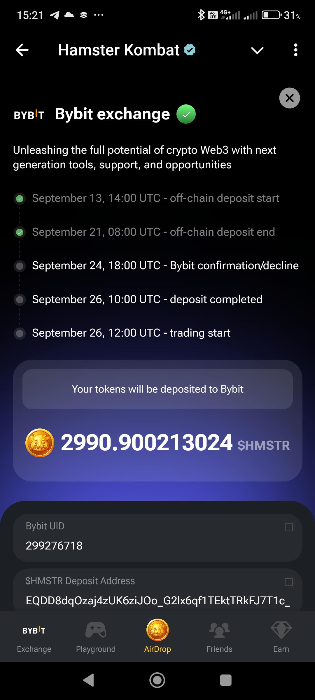 >>1131123 Я в последние 10 минут перед закрытием 1 сезона отвязал байбит и таки выбрал телеграм кошель, моя жопа почуяла, типо вдруг данные там не такие, хоть и проверил uid, memo и ключ раз 200 наверно, я лютый ОКРщик и была тряска, а тг кошель напрямую в приложении подключается, монеты левому еблу точно не уйдут.