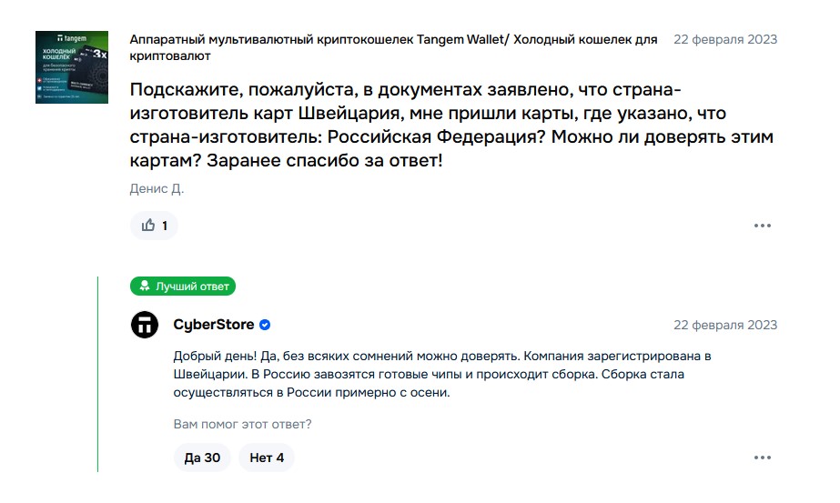 Заходим на озон, смотрим тангемы, видим продавца "Tangem". Цена в два раза ниже чем на оф. сайте в долларах, в отличие от safepal, который при стоимости 50$ на оф. сайте продается за 7к рублей. Смотрим продавца - ООО "Смарт Кэш" (5177746367772), учредитель ТАНГЕМ ЭЙДЖИ, Швейцария.