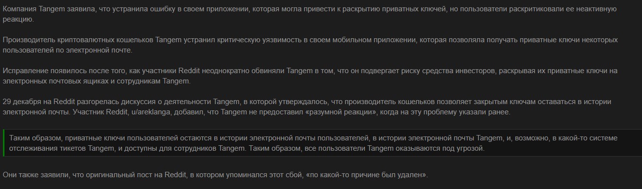 В общем ясно, что деньги не пахнут, в РФ много криптанов, рынок большой. Однако о чём ещё может врать Tangem?