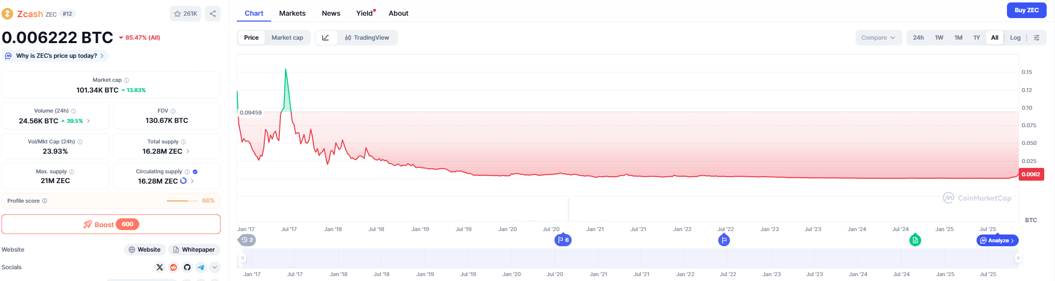 ZEC как shielded транз в сети станет много - повторит судьбу монеры на цексах. Ну и 20% dev-fund это совсем не сатоши видение.
