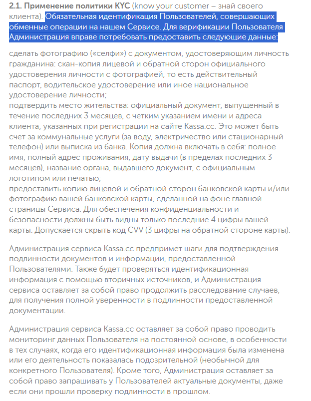 >>1269343 Ты обосрался со своим же советом, там большинство на деле - требуют KYC. Просто прими это. И с кассой, ты тоже обосрался - https://kassa.cc/terms_of_service/aml-policy >Как выводить монеро без KYC надо показывать нет? Оставь себе, будь так любезен.