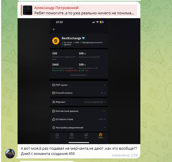 чо ето за чел? в объявлениях пишет, что переводит с личной карты, переводы от третьих лиц не принимает (поэтому курс максимально ублюдский), но его бы захуярили за 3 тыщи переводов с личной карты в месяц, не плюс у него нет ни одного негативного отзывы (точно был один раньше, куда пропал?) и в этих телеграмм группах типа чс байбит его ник по поиску не находится какая-то подозрительная хуйня