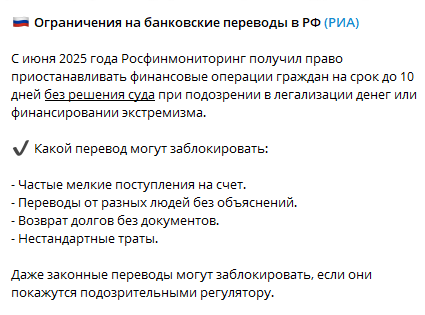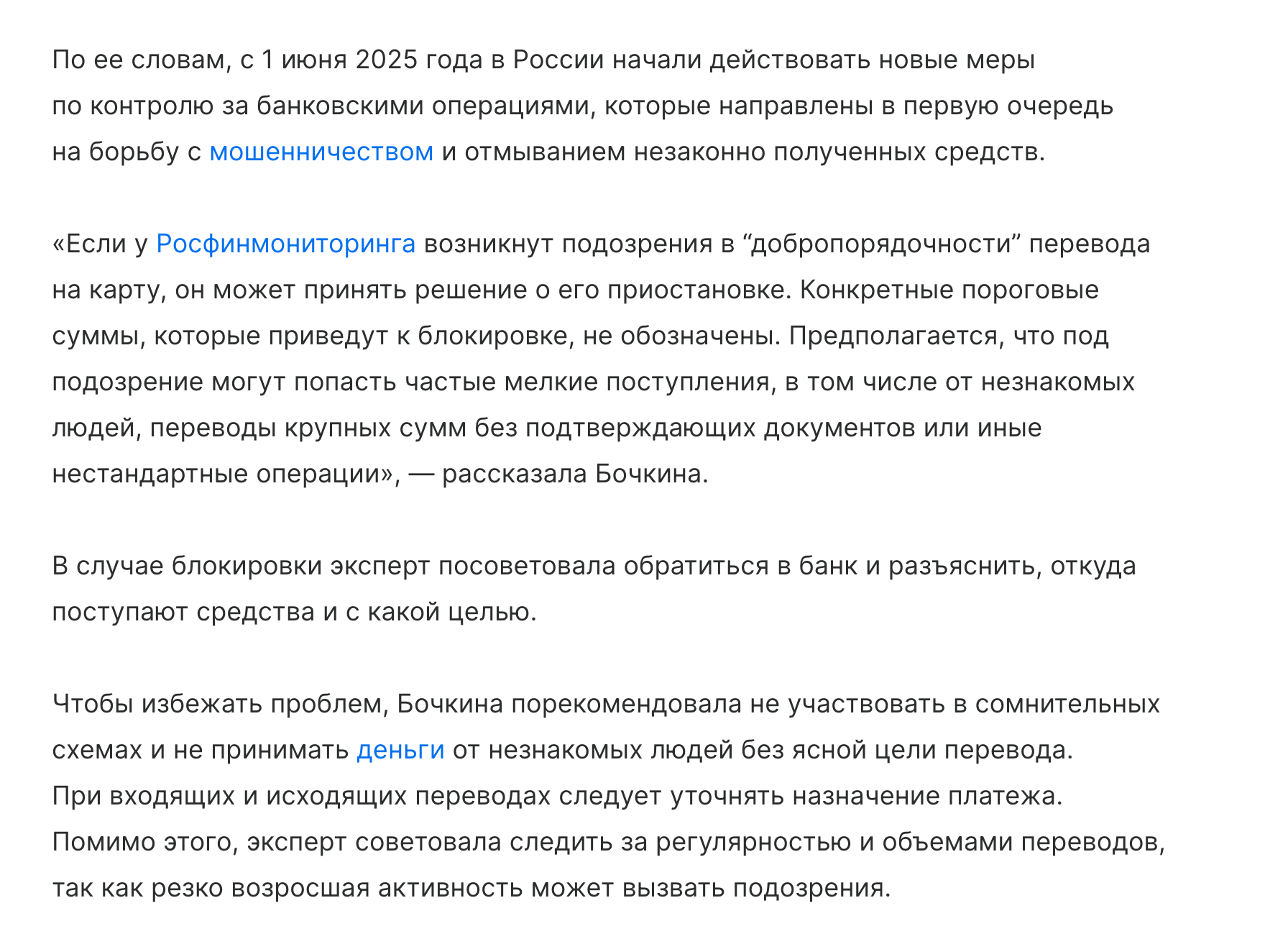 Хотите пользоваться банковской системой в РФ - не используйте 3-е лицо на п2п, готовьте подробное объяснения по операциям за 3-6 месяцев, не дробите суммы, не переводите сразу же после поступления, если на профиле оборот 100-200к в месяц, не нужно принимать резко разово по 300к - всё есть в треде и шапке. внезапно - можно не пользоваться банками в 2к25 или пользоваться по минимуму