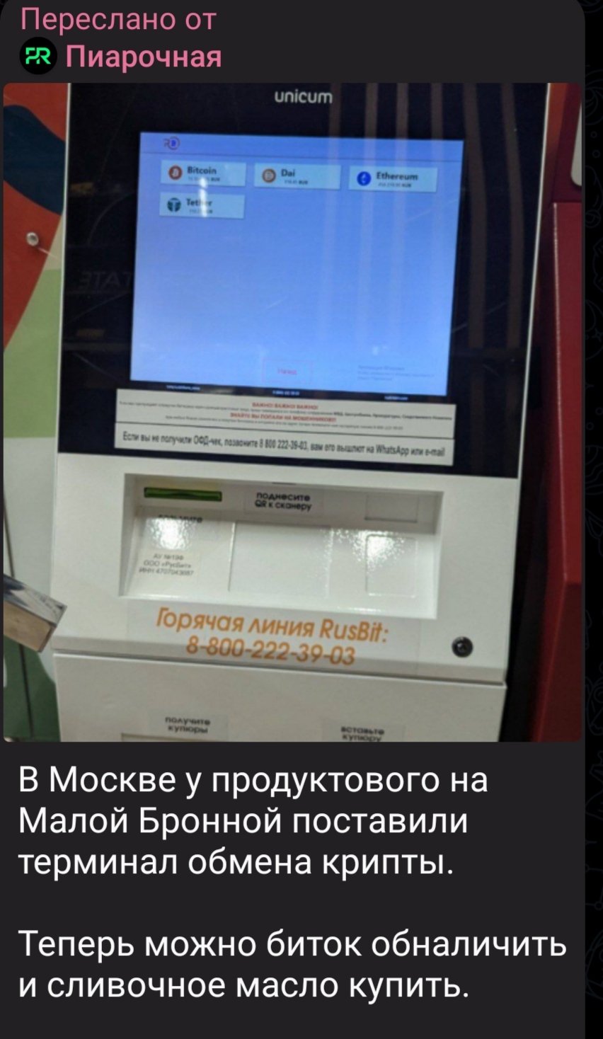 >>1270505 Криптомат, он же bitcoin atm, он же терминал. Просто подходишь, указываешь кошелек, засовываешь деньги, оплачиваешь. Курс не выгодный, есть комиссия, но для 1 раза сойдет. Документы не нужны.