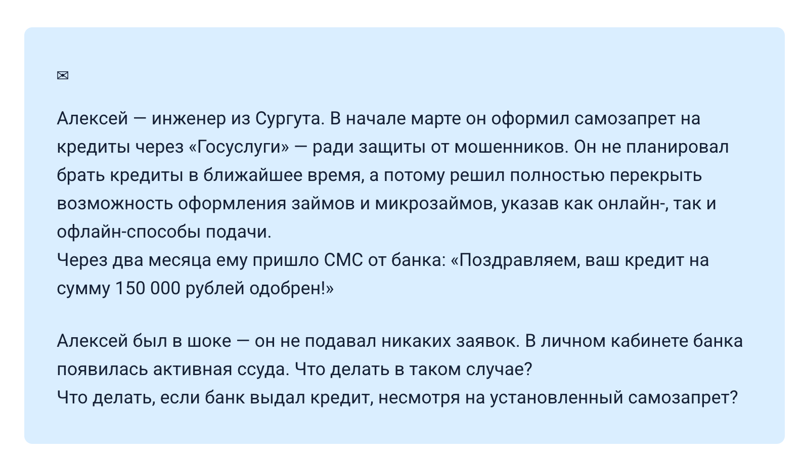 >>1277551 >Если банк или МФО выдал займ при активном самозапрете То ты будешь гонять по юристам с горящей сракой и доказывать что он у тебя был активный. А пока долбоеб наивный это делаешь, то какой то таджик твое наивное тупое ебало с паспортными данными использует уже в других микрофинансах. Так что продолжай копротивляться пидор тупой.