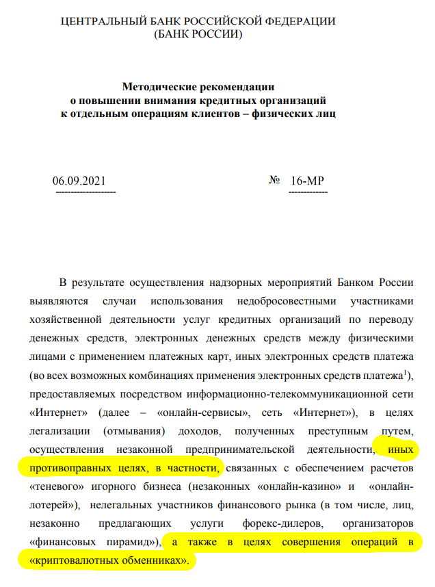 >>1290493 >Чет я не понял >Если ты заводишь фиат и покупаешь или заводишь криптовалюту и продаешь в фиат на счете >цифровая валюта не является платежным средством Сложно, понимаю. Они пишет что нужно, потому что "ПРОДАЕТ В ФИАТ". Цифровая валюта это не фидуциарная валюта и операции с цифровой валютой не обязательно подразумевают взаимодействие её с фиатом. >Ответ ФНС с пика не понятно на какой вопрос отвечает. Вопрос был про "нужно ли уведомлять ФНС об открытии счета на операции с цифровыми валютами"