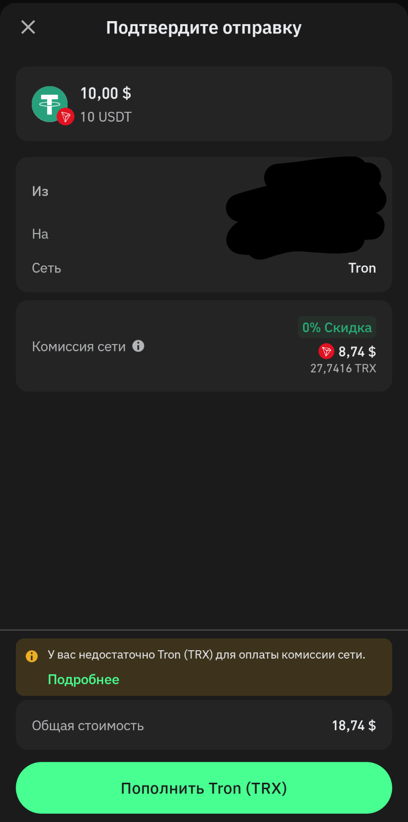 >Если кидаешь со своего кошелька то да, в 7 раз больше. А какой смысл тогда брать TRON, если потом на комиссиях разоришься? Ну если по 1000к переводить, то похуй, а если расплачиваться во всяких сервисах то это в среднем 50% комиссия выходит.