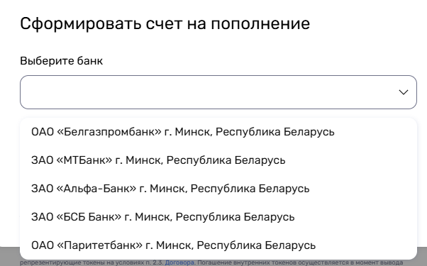 >>1291262 >Если я выберу МТбвнк,то получу реквизиты их посредника? Да. После выбора банка формируется платежка с номером, суммой, реквизитами брокер.финанс и реквизитами российского банка-посредника и белорусского банка.