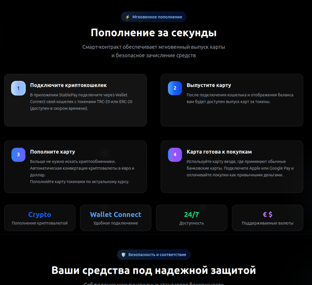 А вот еще такая хуйня появилась - https://stablepay.cards Микро-новость: https://www.rbc.ru/crypto/news/68ac56cc9a7947602ffaabb0 >В России появилась международная виртуальная карта StablePay ... с поддержкой платежной системы Mastercard ... доступен для физических лиц после прохождения верификации — потребуется только паспорт и селфи.