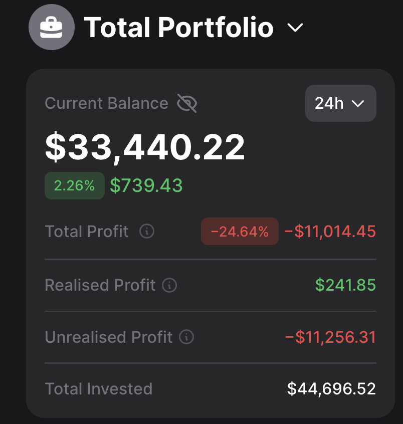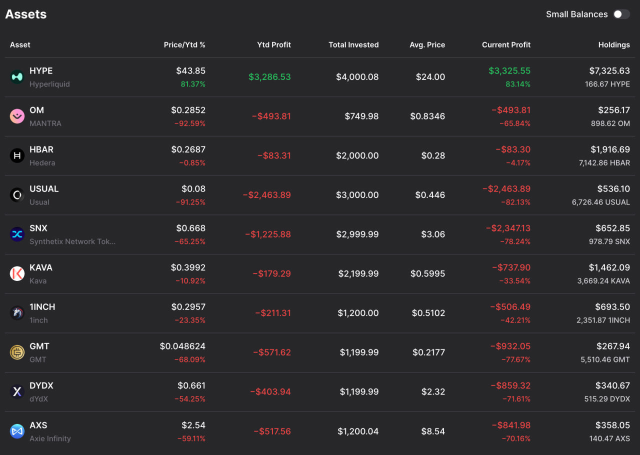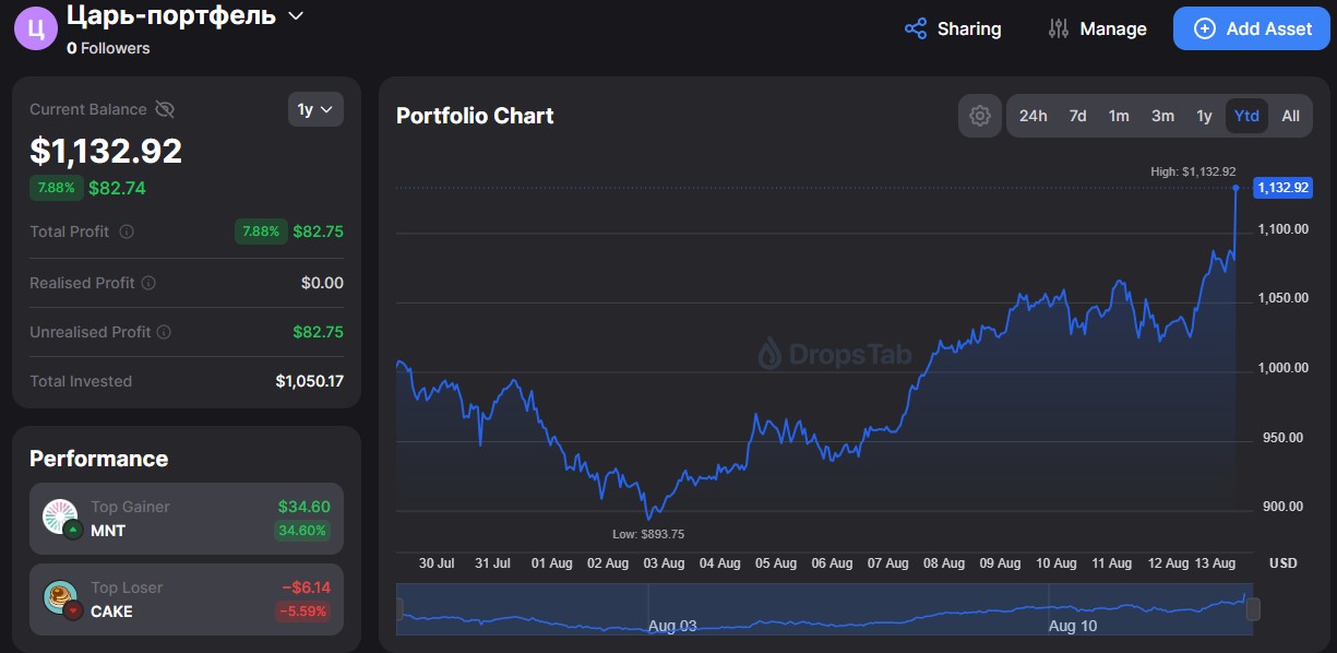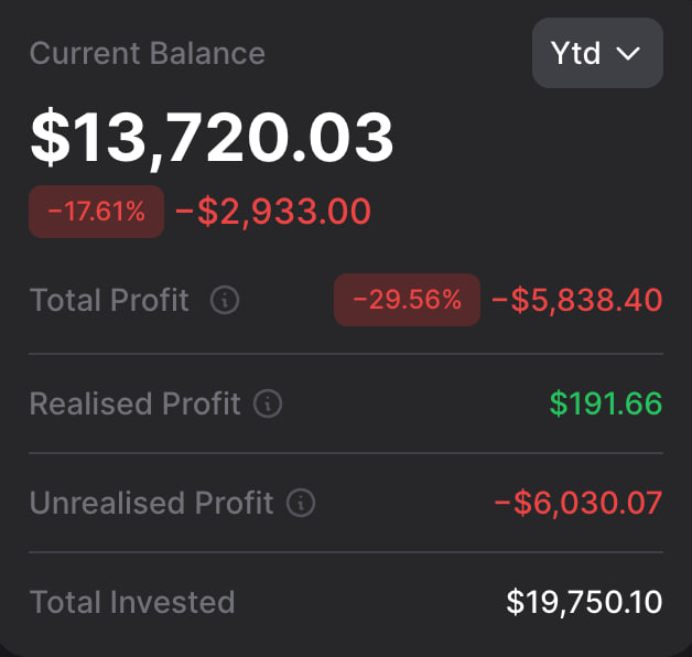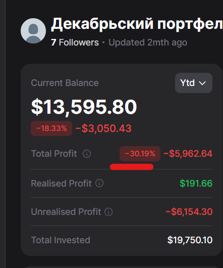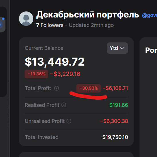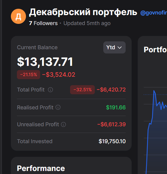 Я даже готов представить, что случится альтсезон и ему дадут выйти в безубыток. Ну и какой смысл в этой папке даже после этого? Типа "ребята, вы мне весь год ссали на ебальник, но теперь у меня портфель не в просадке, не зря я всё это время вашу мочу хлебал!". Странно всё это.