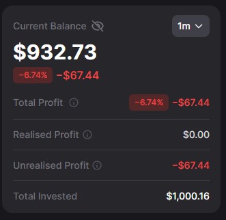 >>1280457 (OP) Шрек, без хейта, я тоже сижу в топ альте, правда у меня точки входа получше твоих, но чему ты радуешься? В целом ты в жестком минусе. На что ты надеешься? Реально интересно.