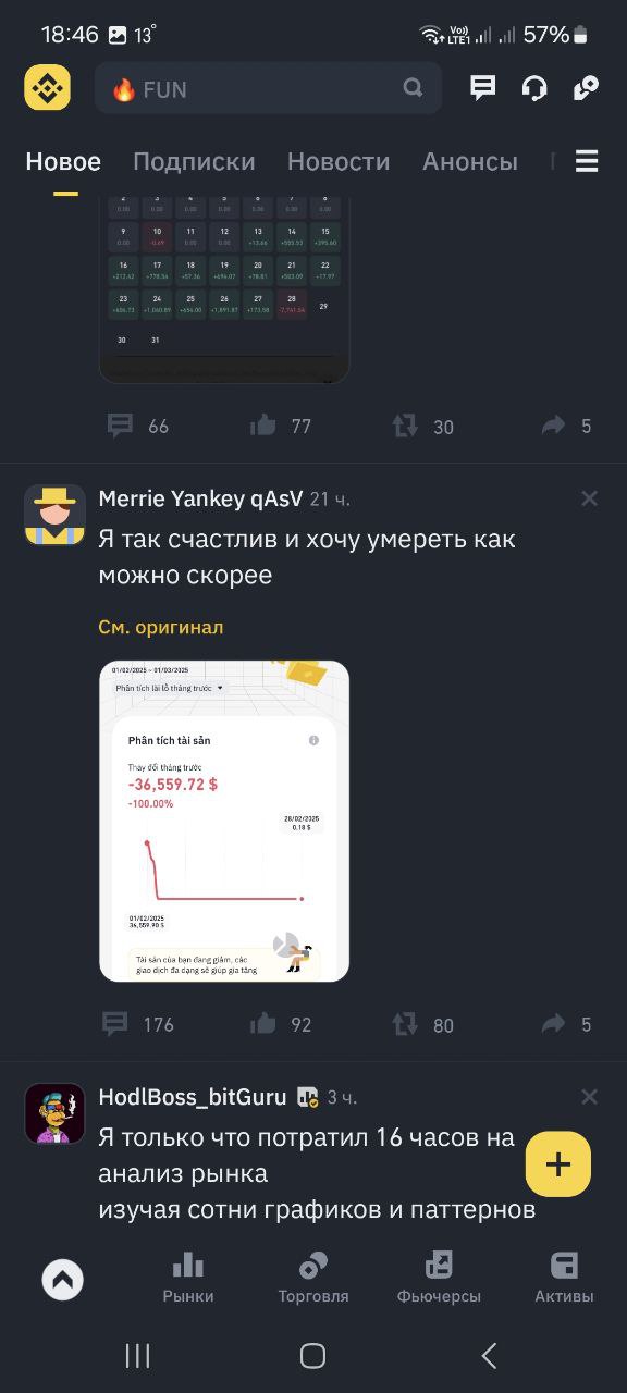 Эйфория пройдет, биток с эфиром пойдут на коррекцию, дешевые говнины, которые "еще не отросли" по классике пойдут обновлять новое дно, как это было после декабря. Никто не выйдет из альтов с профитом или хотя бы в безубыток. На каждом миницикле памп не доходит до предыдущих хаев, а новое дно ниже предыдущего.