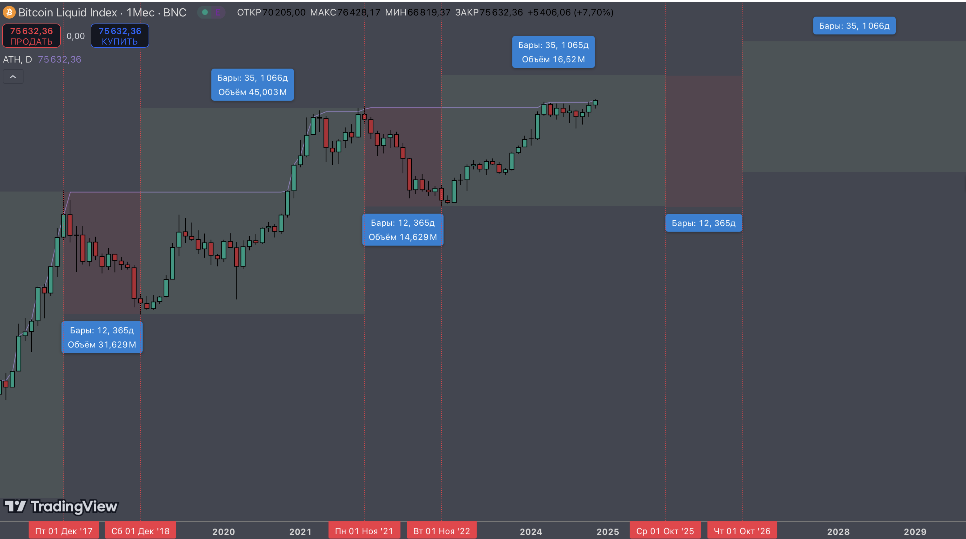Это убирает привязку к датам для входа в альту. Например, в прошлые циклы что по датам, что по Расселу, отличный момент для покупки был октябрь-декабрь, но, в этом цикле Рассел в ноябре не пробился выше АТХ, тем самым, можно было не заходить в альту в октябре-декабре, а ждать коррекцию и выкупать падение, либо ждать пробитие АТХ по Расселу и только тогда покупать говно.