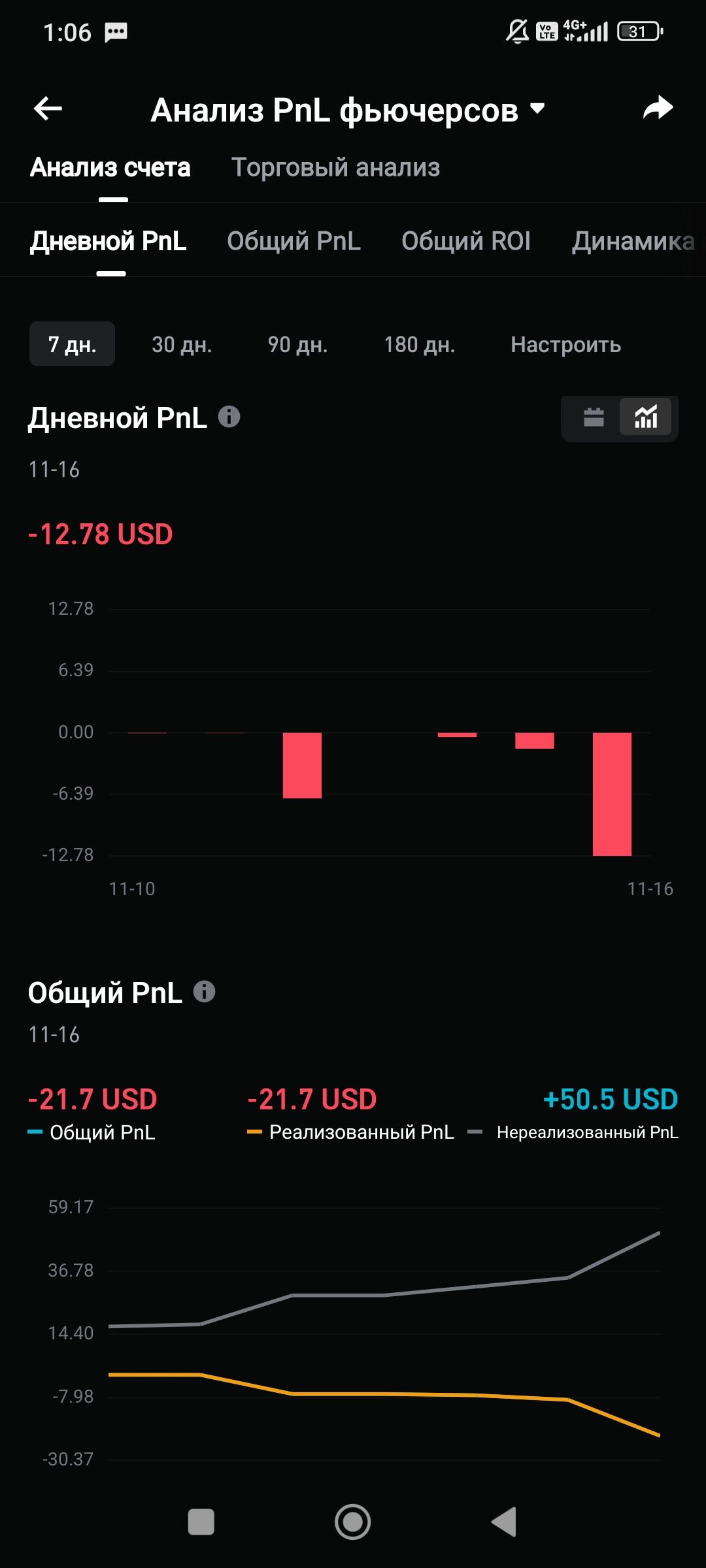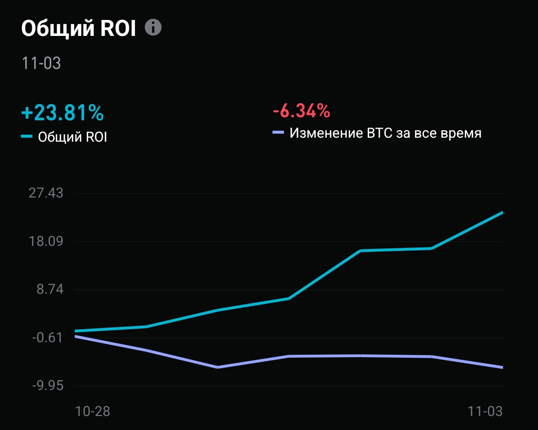 Бля, не может так быть, что я две недели постоянно угадываю, куда вся эта криптохуита пойдëт. Это точно не случайность уже. В общем, я такой вывод делаю: финансовый анализ лучше качается на реальной торговле (больше опаска проебаться, поэтому поиск правильных новостных сигналов очень даже критичен) , и а для понимания механики рынка лучше демо (синдром трясунчика хорошо лечит). Завтра же подключаю к делу параллельное с реальным счëтом демо. Хуй знает, просто наполовину уменьшу работу с реальным счëт (хотя у меня там всё заебись, на пикриле увековечиваю ROI за 2 недели) и буду снова ловить шпили на демо. Ну план прежний, пока месячный челлендж держать темп 3% в день (сейчас немного не укладываюсь, но я очень дохуя осторожен. Лучше 2,76%, но устойчиво. Больше средних 3% мне сложновато сделать, меньше 2% редко бывает. То есть, я под свою задачу настроил стратегию гораздо лучше, чем раньше. Теперь вариант проëб вот какой: могут в любой день/час/наносекунду блокнуть для РФ абсолютно любую иностранную биржу. Надо что-то решать. На кошелёк выводить каждый день бабки, допустим. Но бля, на чтотогда торговать. Опять считать это всё надо.