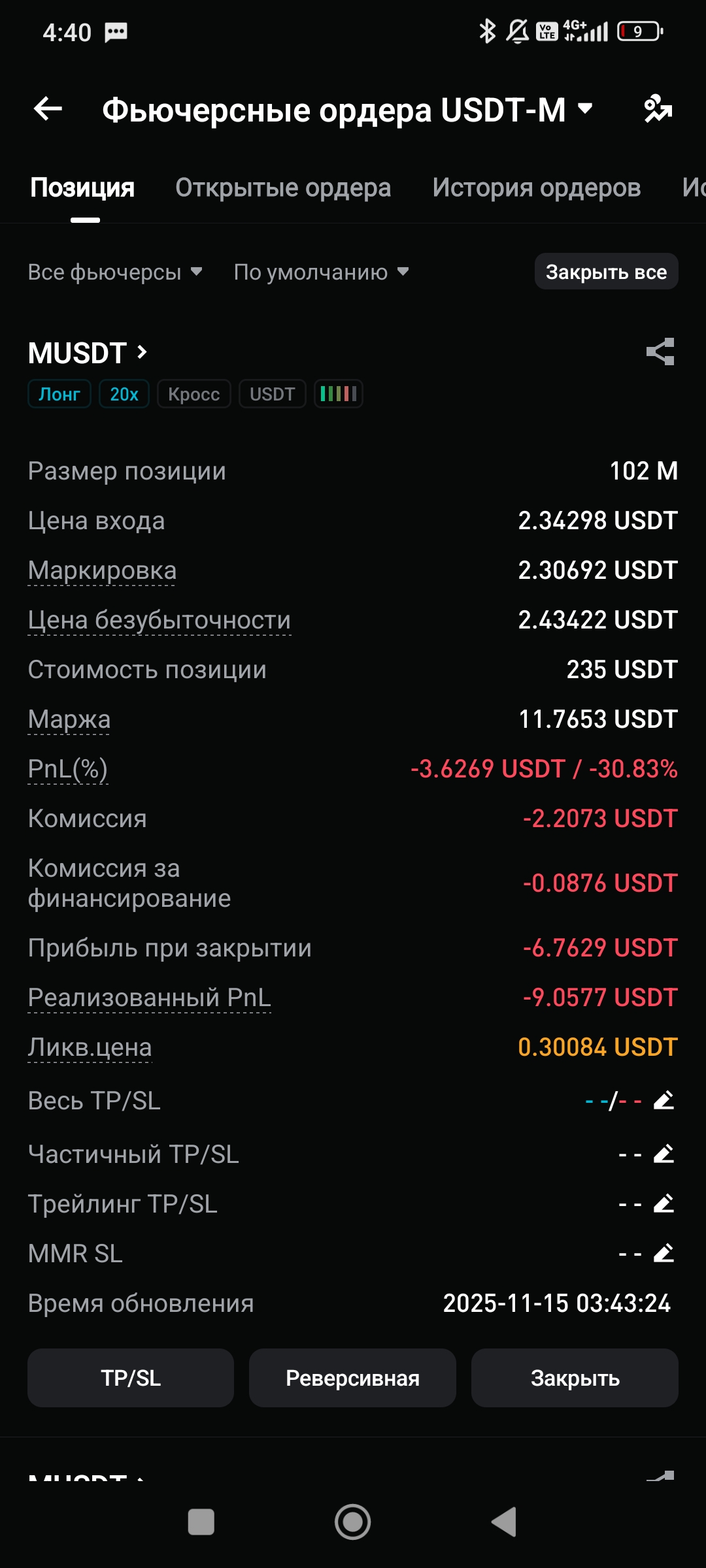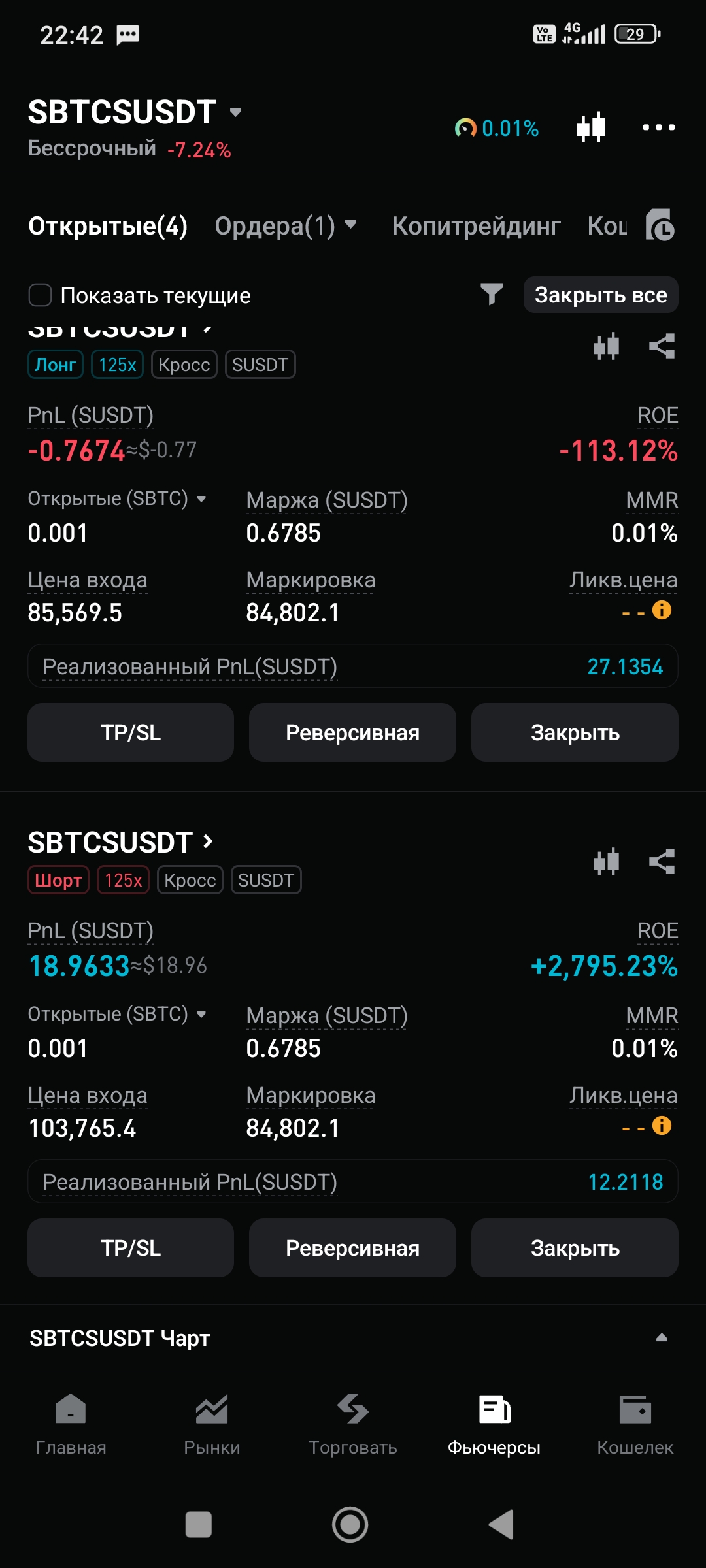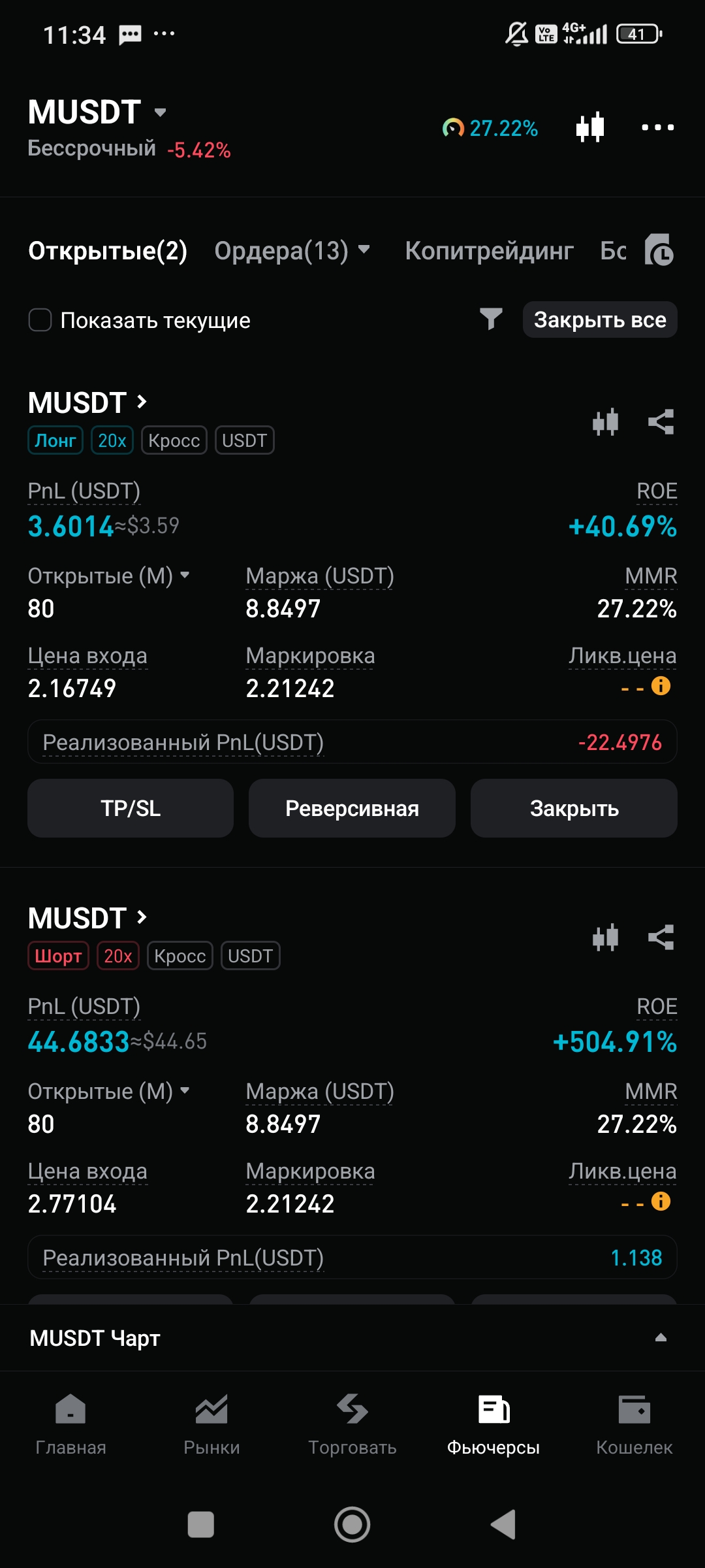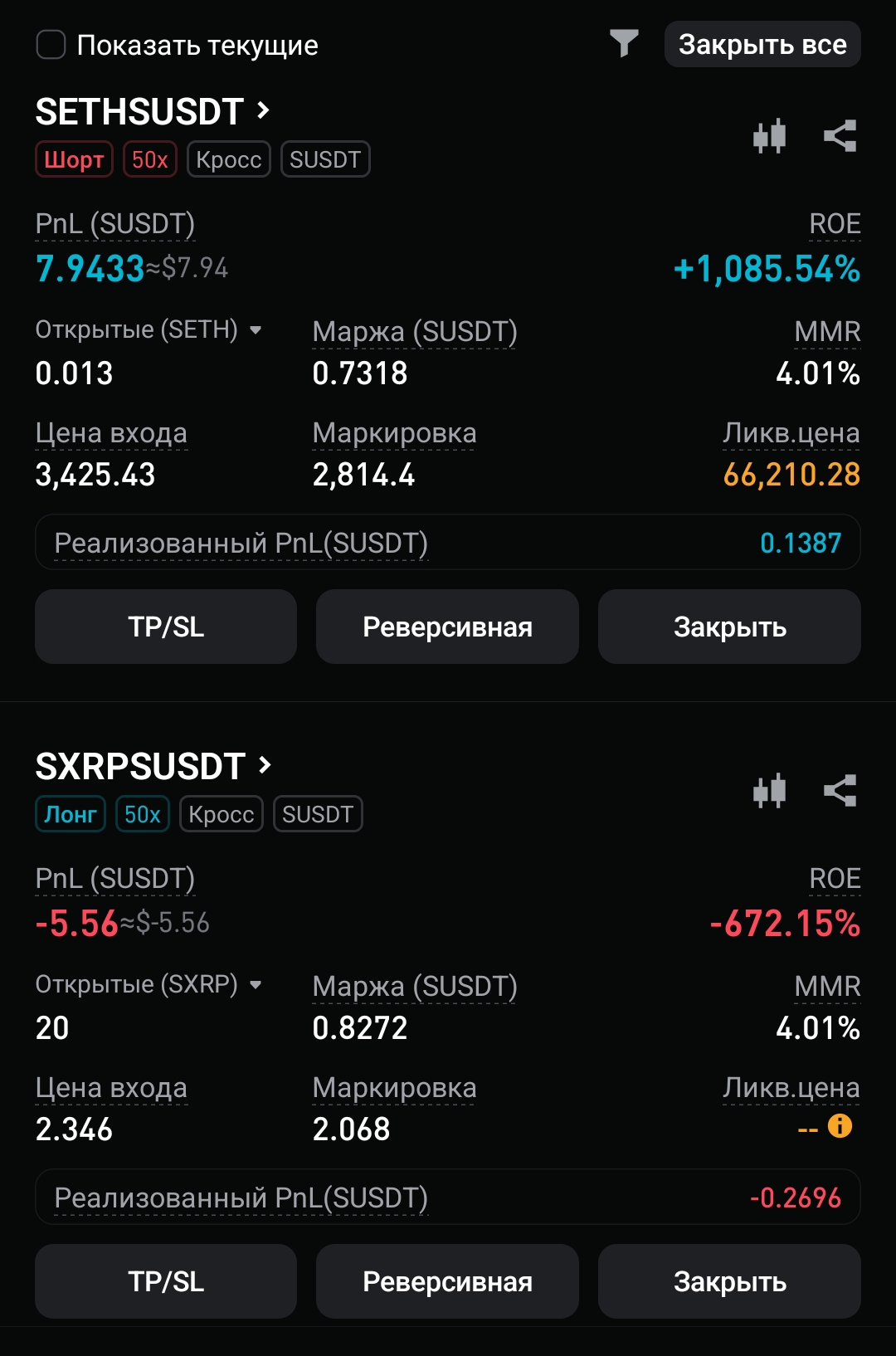 Вот так зашла, уменьшил позиции до минимально возможных, комсу отбил и лягу спать сейчас. Ставки равны, мне похуй. Как будут на каком-либо из ордеров сотни процентов, подумаю, чë с этим делать. Ждать тысячи процентов или по чутка уже скрести в копилку.
