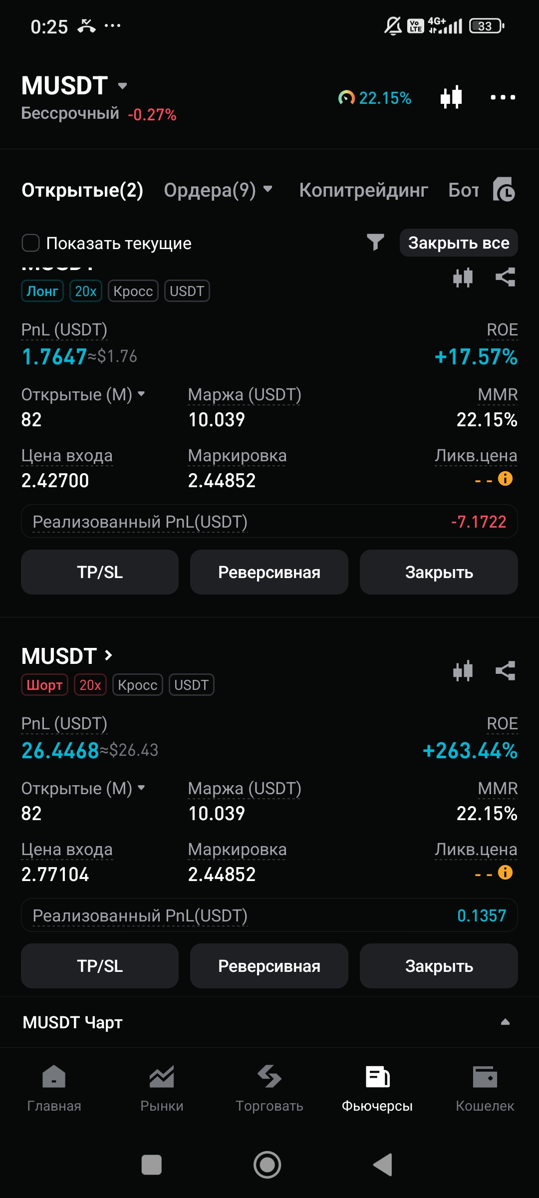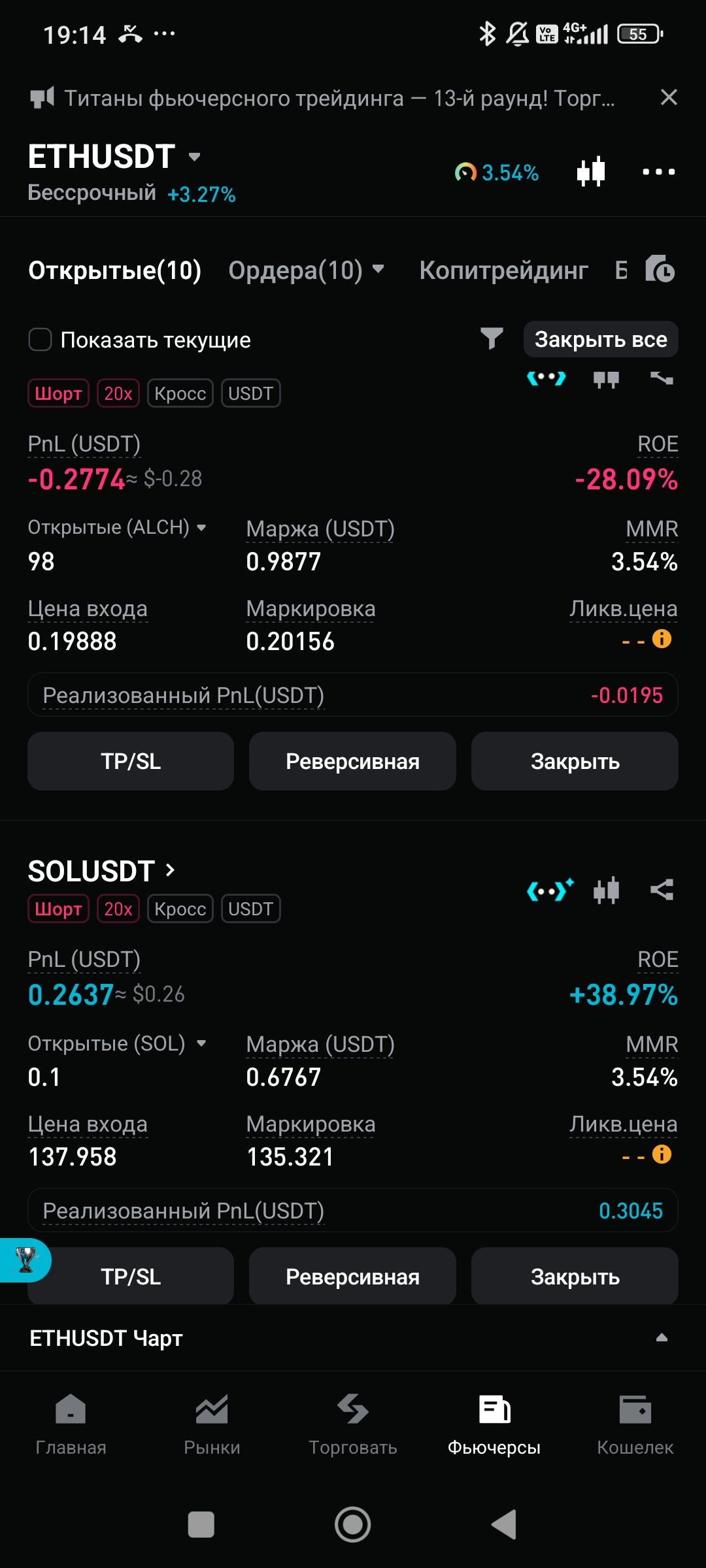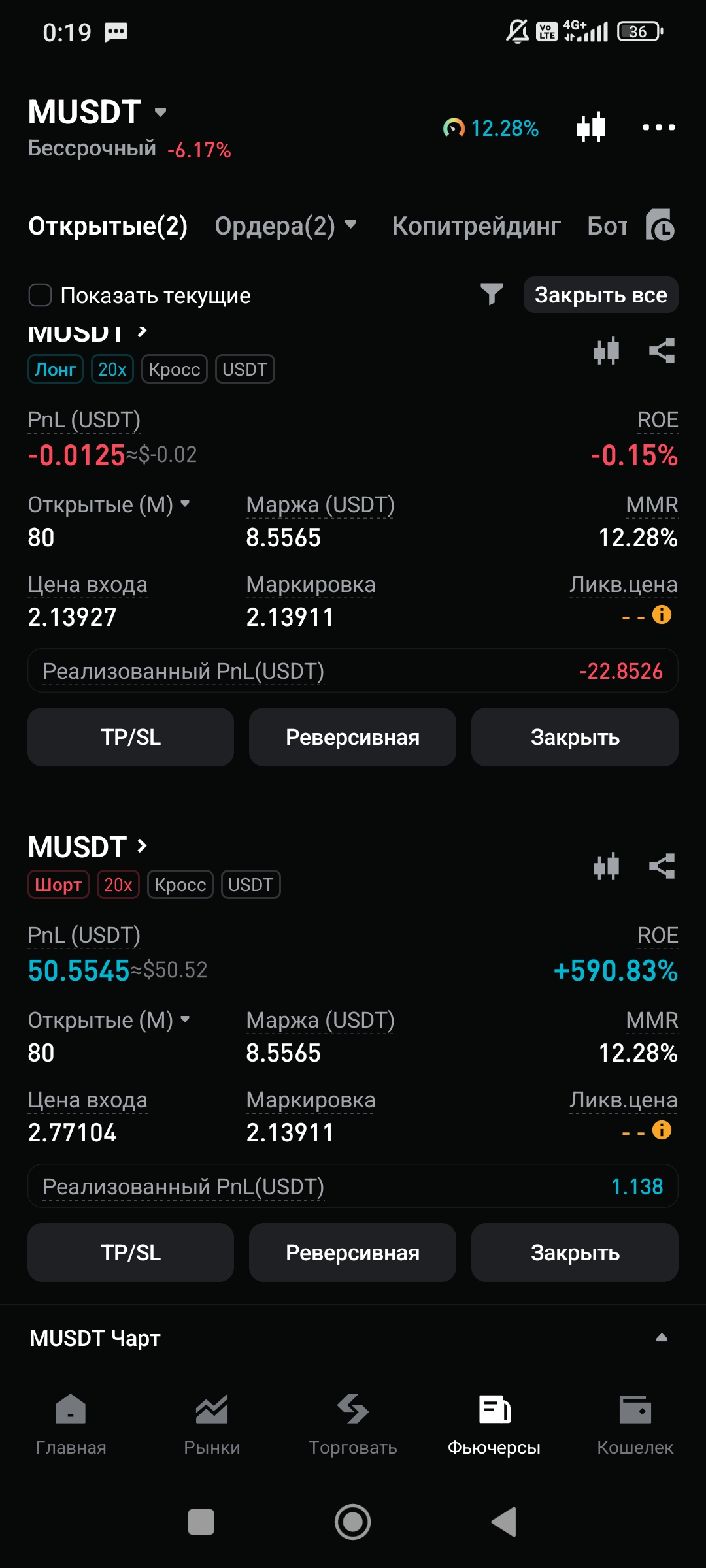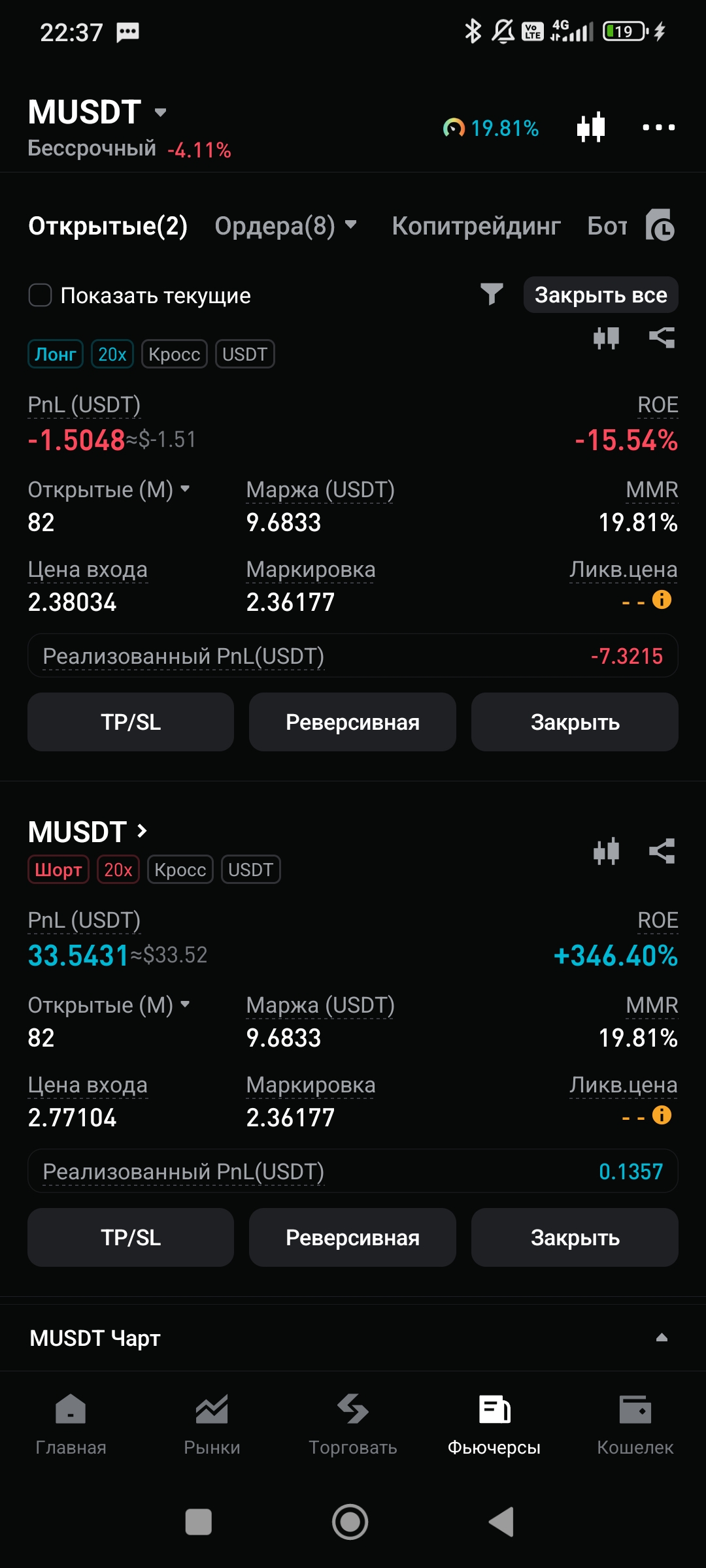 Вот так зашла, уменьшил позиции до минимально возможных, комсу отбил и лягу спать сейчас. Ставки равны, мне похуй. Как будут на каком-либо из ордеров сотни процентов, подумаю, чë с этим делать. Ждать тысячи процентов или по чутка уже скрести в копилку.