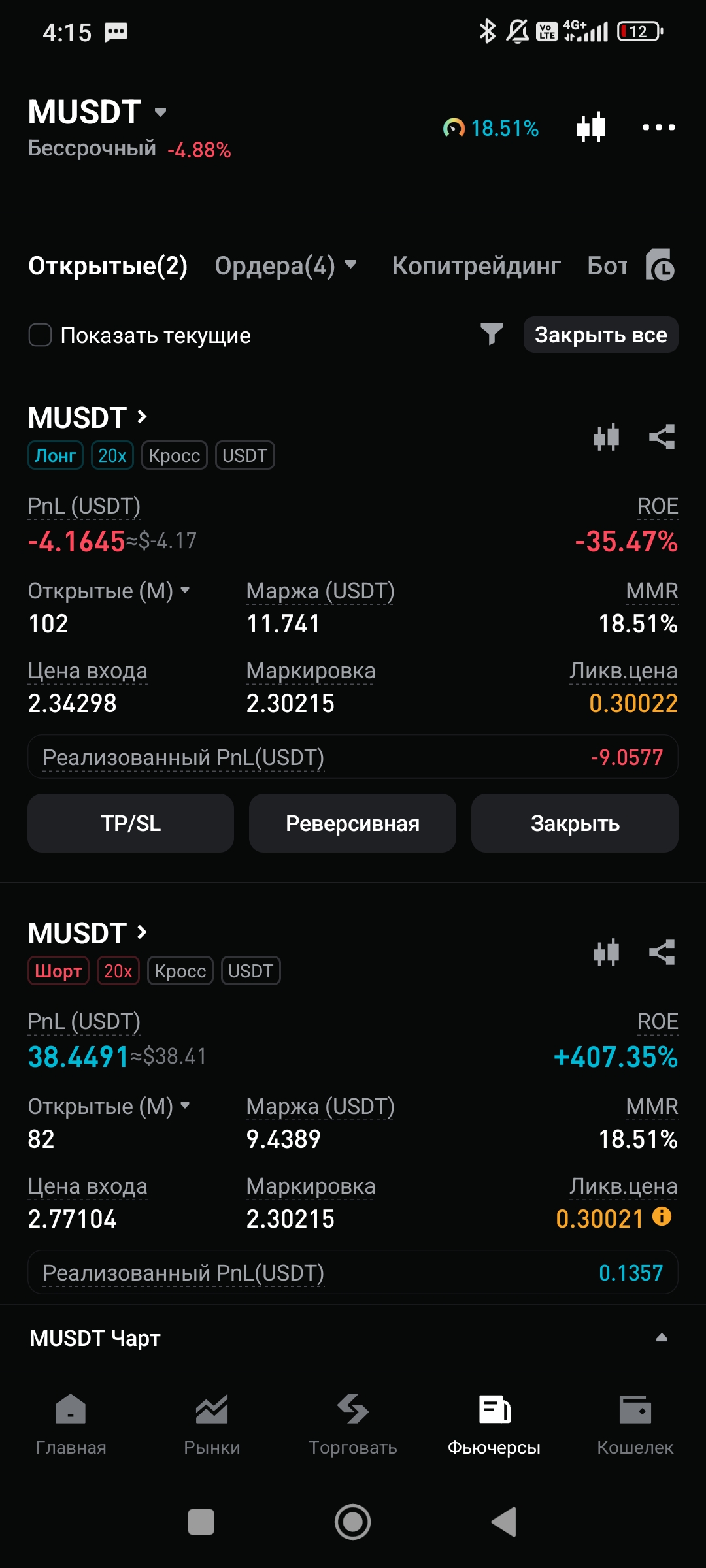 Memecore - это инфраструктура для создания монет, блокчейн первого уровня. Любой желающий может сделать свою. Думаю, он будет стрелять и стрелять. Может, и какие-то ещё монетки на мемкоре. Из того, что там на создавали, часть монет уже тоже иксует, буду набирать лонги. Сейчас держу лонг-позицию по мемкору с плечом 20, хеджированную шортом, усредняю его на прострелах. Пока всё идёт заебок, риски сомнительны, PNL потихоньку растëт. Не так быстро, как это можно проделать было с парой F/USDT, но усреднять очень удобно, заходя с первого же шорт-сквиза. Получается, и USDT чутка набью, и вытяну в итоге лонг в охуевшие проценты, не быстро, зато без тряски.