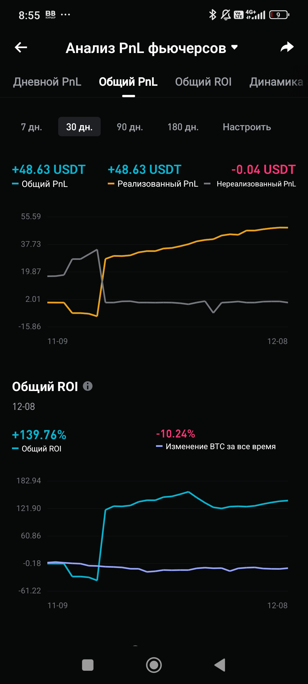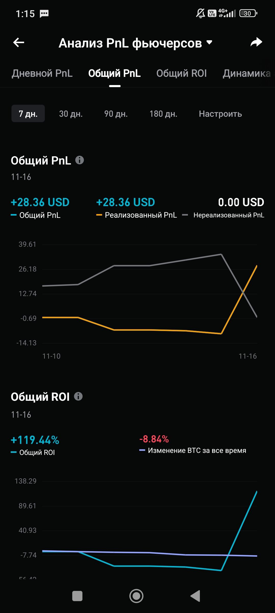 Очко твоей мамки всё шире, в целом мне зашло играться в среднесрочную стратегию. Требуется меньше контроля, меньше действий, выхлоп +/- такой же или даже получше. Неделю тяну два ордера, почти полтинник депо, хороший результат. Усредняю лонг уже почти в ноль, дальше можно будет половить прострелы выше моей средней цены входа и улучшить реализованный PNL. Нереализованный заебись, меня вообще устроила бы такая общая сумма даже 30 ноября, а сейчас только 14. Потенциально, схема на месяц скорее всего будет получше предыдущей дневной.