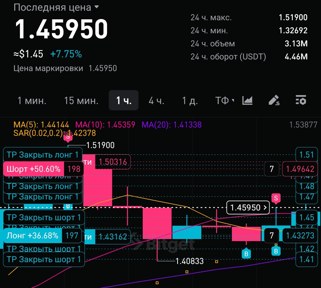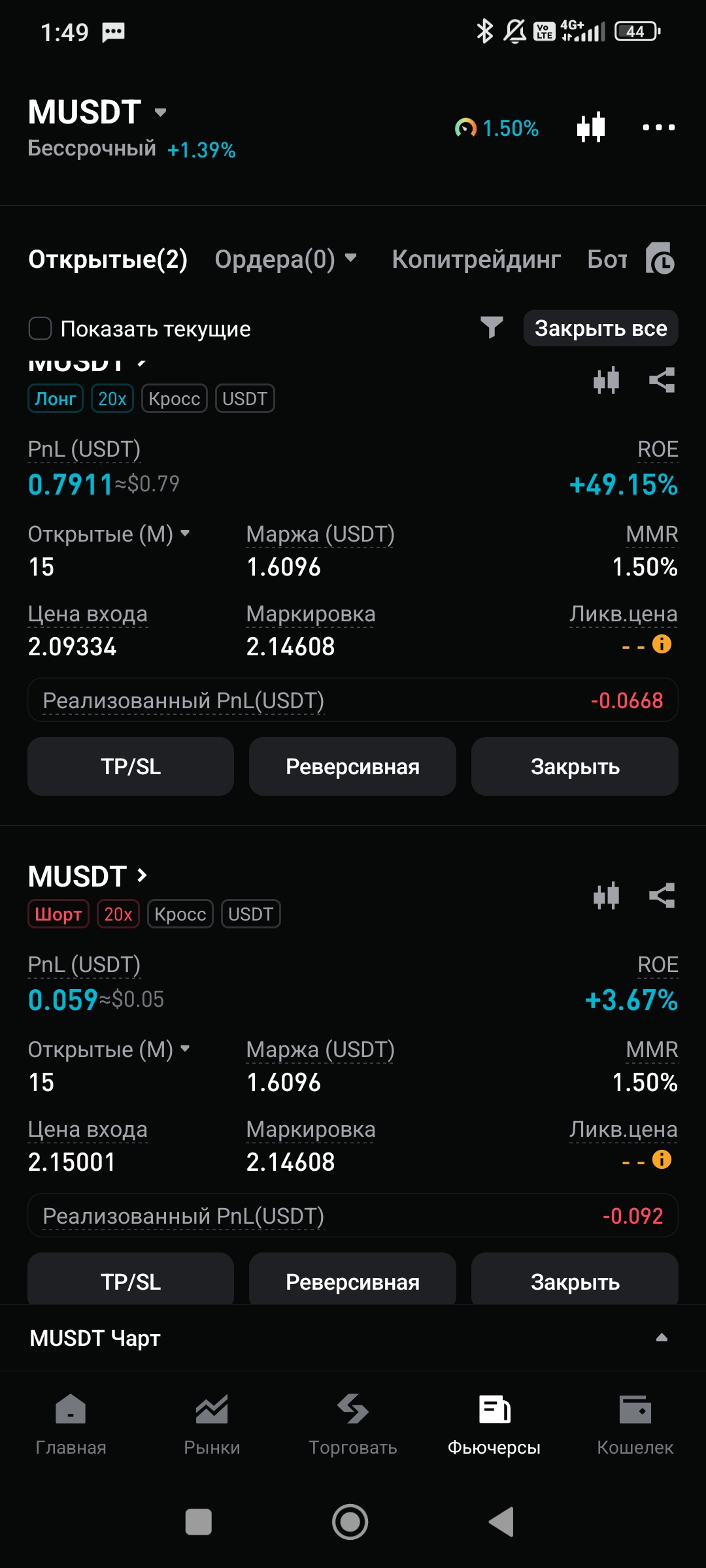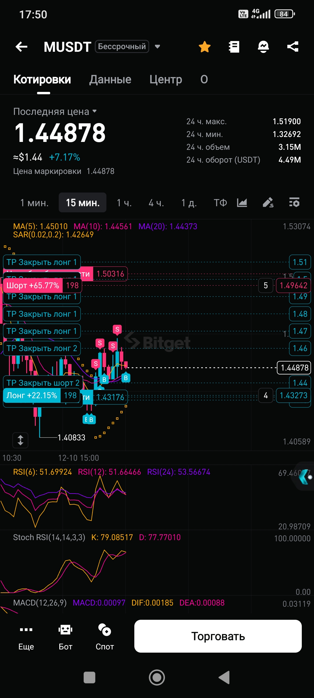 Проблема 50 плеча на F/USDT - сложно слишком усреднить, почти игра в угадайку. На 10 я бы это делал без тряски и выгреб полтинник, а так сделал всего 30 долларов (хотя по началу мог выйти в 70 или 90, не помню, ни чем не рискуя).