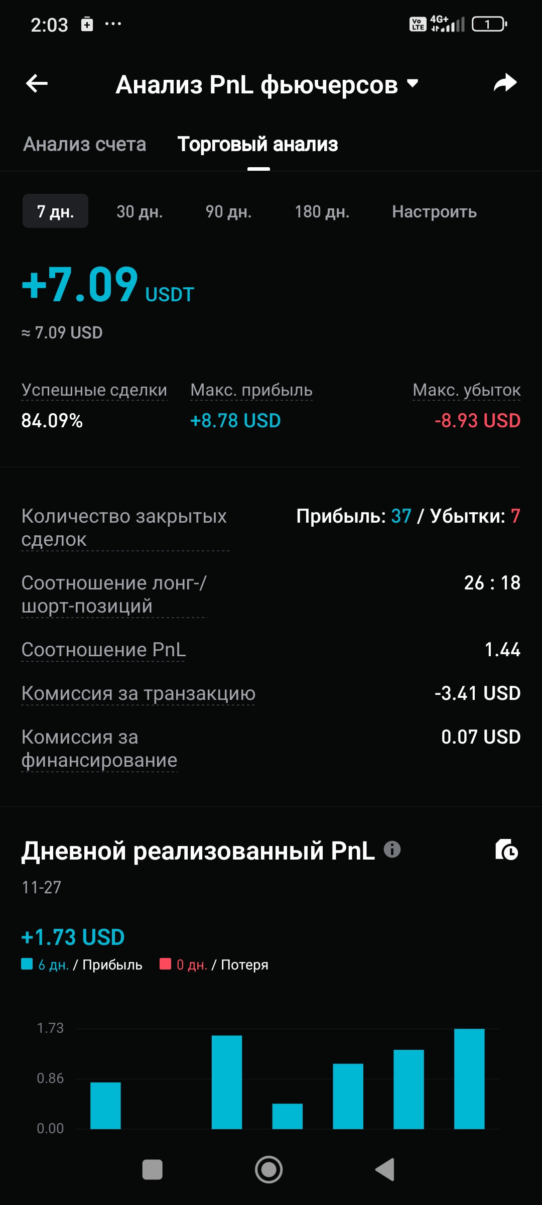 Недельный лимит 6.18% Сделать перерыв до конца недели. Проанализировать последние 5-7 дней торговли.