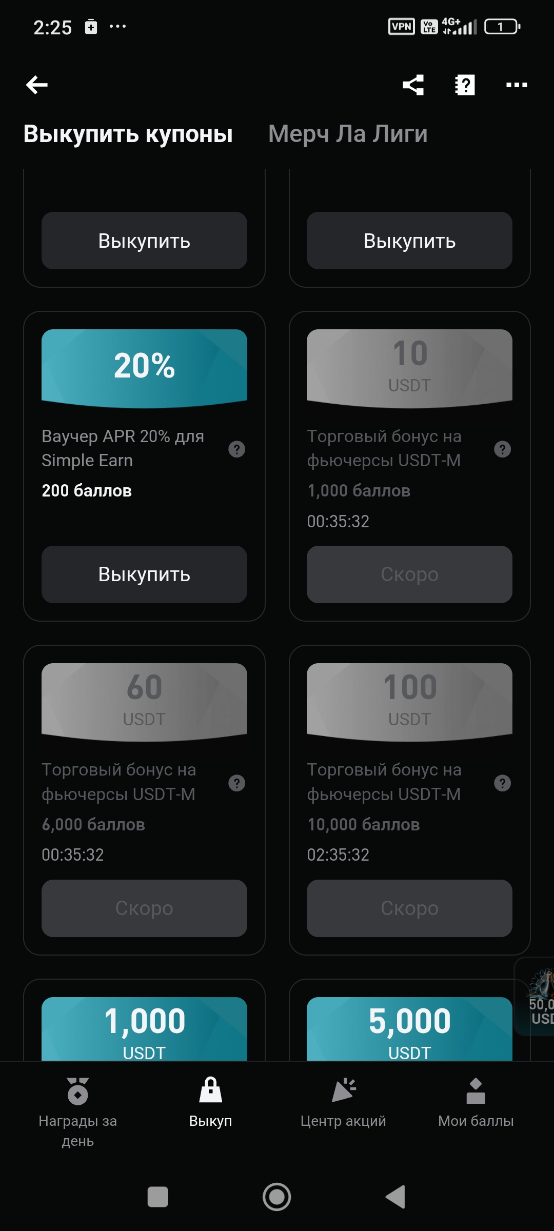 С биржи надо выжимать всё, что она предлагает. Там копеечка, тут копеечка, а вообще-то это единичные проценты прибыли, а то и десятки, когда до 1 к баллов добью и возьму ваучер на возврат комсы.