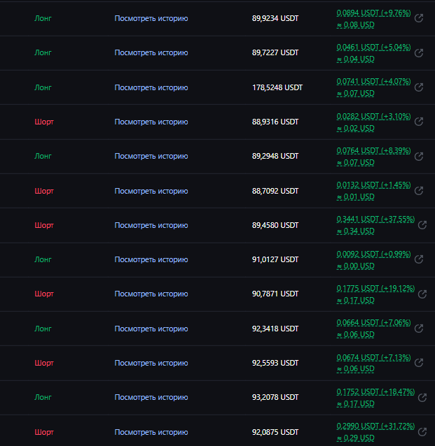 Надо быть стратегом, а не как тупорылые закрепы. Минусов без ошибок нет. Ну вообще бля ни единого (да, была одна ошибка, ща покажу, это я проебался и не половину позиции закрыл, а всю, ползунок задел просто). Вот такой хуйни и не должно быть. Всё, других нюансов вроде нет, вот они, мои 3% в день и миллион за год. Заберу деньги у закрепов, короч, целый лям. Ну как бы, 20 центов жаль. Эх.
