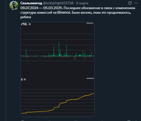 Винрейт больше не задрачиваю до 100. Где-то 60-40, но я сознательно закрываю в минус то, что можно увести в плюс. Простейше: вижу 3% депо + комсу по рынку, жму кнопку "закрыть всë". Не всегда нужно по-отдельности с каждым ордером возиться, просто похуй стало. Это уже для демо приколы, вывести винрейт 100 (делал, пруфал в треде закрепных хуесосов, получил очередную порцию "врëте"). Ну и я подумал тогда: если я буду там пытаться быть "своим" среди говна, то своим я не стану, а вот говном - волне. Ладно, работаю дальше. Пока, тред