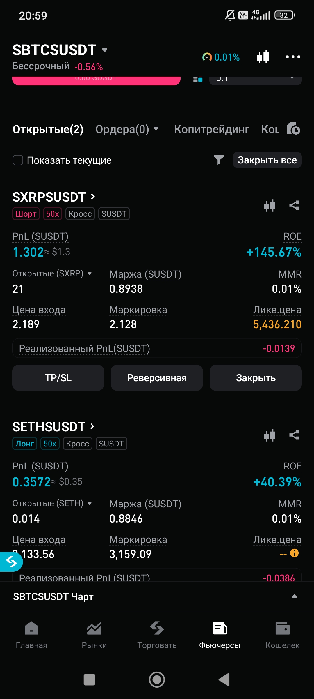 Сделал ещë вот какую штуку - открыл два ордера 1$ и сразу же по 70-80% закрыл, остались по 2 десятка центов, которые себя уравновешивают, разницу сумм чутка компенсировал разницей плеча, и так найду следующую годную точку, какой-то памп или дамп, в такой ситуации это параллельно, лол. Куда сильнее пойдëм - там буду по чутка разбавлять позицию. Скорей всего, к вечеру нарисуется очередной шорт.