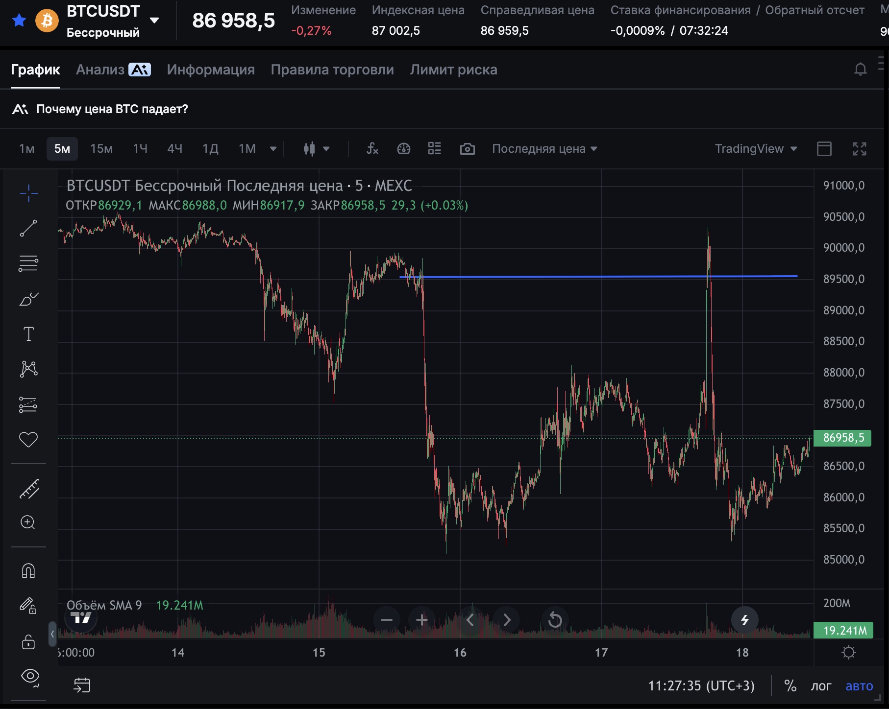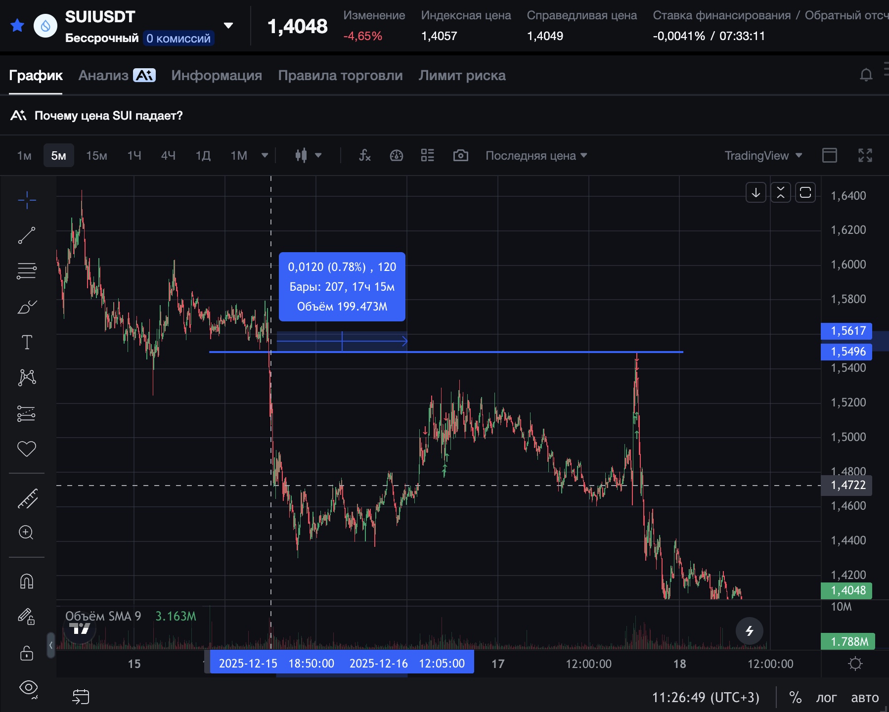 Лохи шортисты разгружаются, менее трëхзначных процентов закрывать не хочу. По-сути, два исхода - или я их забираю, или двигаю точку входа до дна этой коррекции.