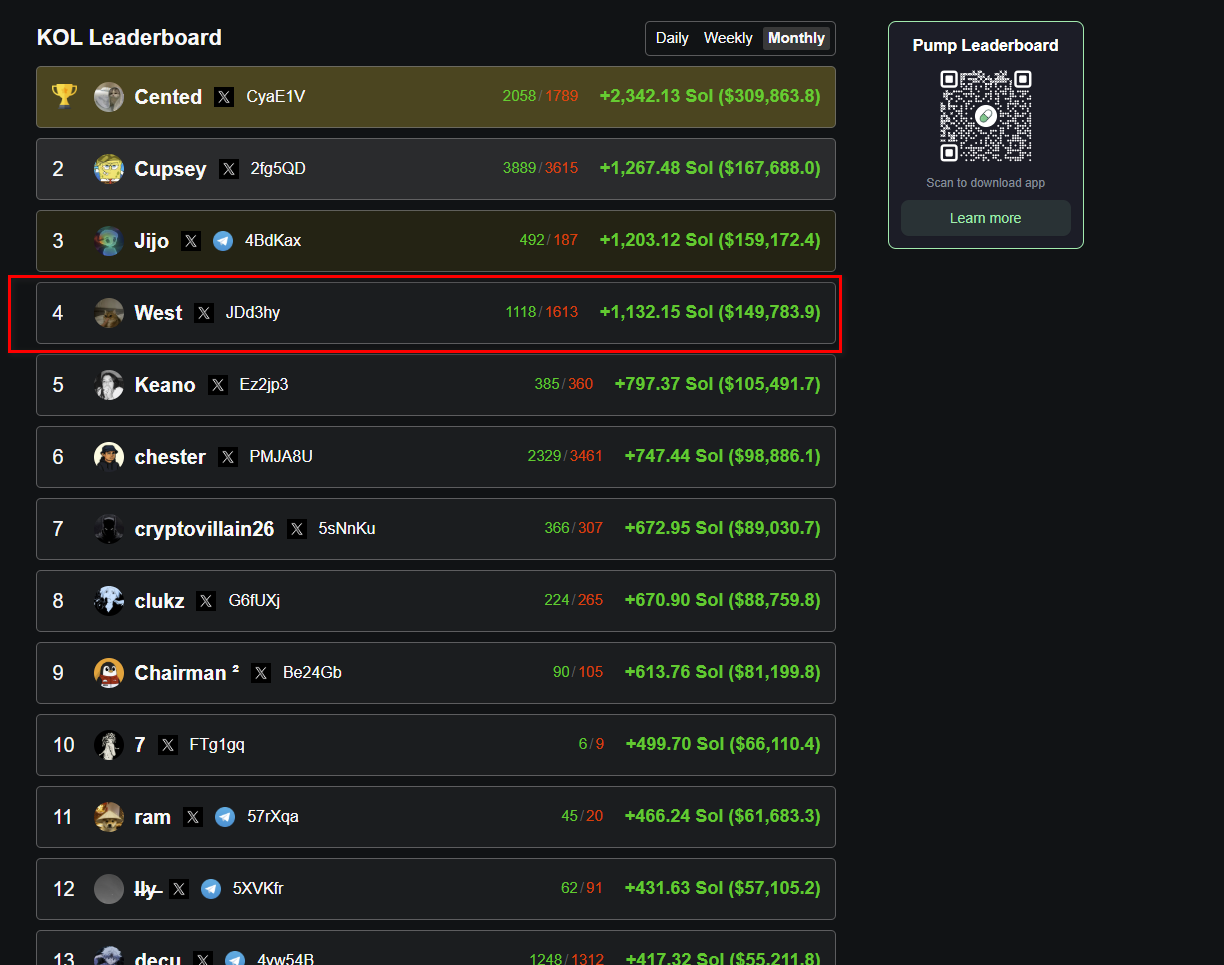 Так он в лайф-режиме стримил (стримит) как он берёт щитки на солане на памп-фане, причём без копитрейдеров особо. У него дохуя стримов на кике было, я накачал себе штук 10 по 20 гигов каждый. Ты можешь за ним повторять изи. Задержка стрима не помню, секунд 10, может пара минут. На колскане в твиттеры зайди, там обычно есть ссылка на ютуб, твитч или кик. Pnl за все месяцы и года сиотои вбивая кошель на gmgn. Как ты торговать собрался если ты элементарно не осведомлён кто и как делает бабки с пруфами?