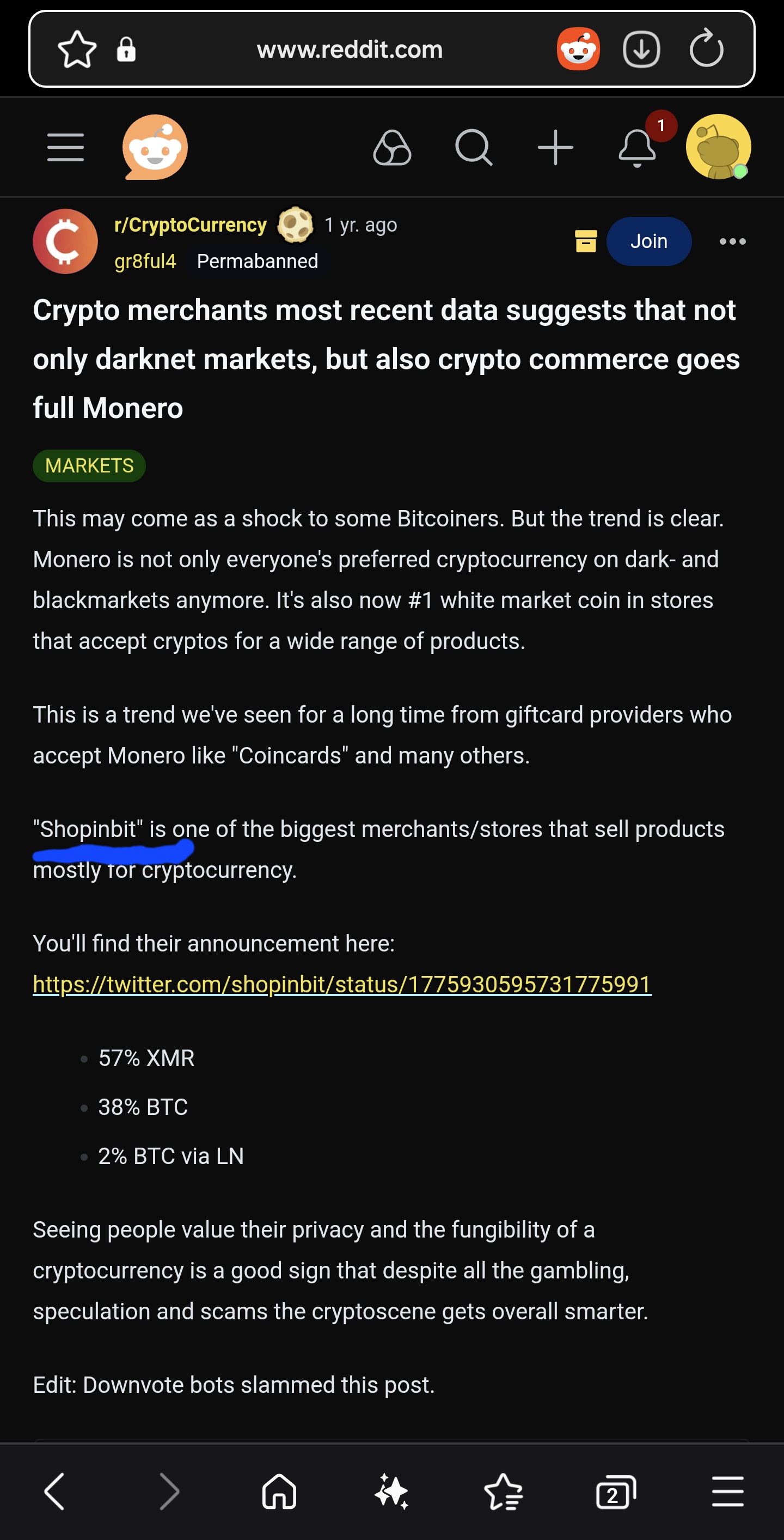 >>1295089 Много монеро-маркетов, биток постоянно принимают всё меньше. Года 3-4 назад все угарали с тупости дарнет-маркетплейсов которые были без опции оплатой в монеро, которые довольно быстро попадались в лапы полицаев. Вот всё думаю замутить новый списочек монеро-онли маркетов, потому что в ОП-посте pastebin устарел (если его вообще кто-то читал). Но чувствую, что это нахуй никому не надо, все основные обсуждения в русскоязычной сегменте крутятся вокруг курса. Хуй знает. В принципе и в клирнете даже за последний год монеро очень сильно поднялась по количеству разных сервисов (monerica.com и kycnot.me регулярно мониторю)