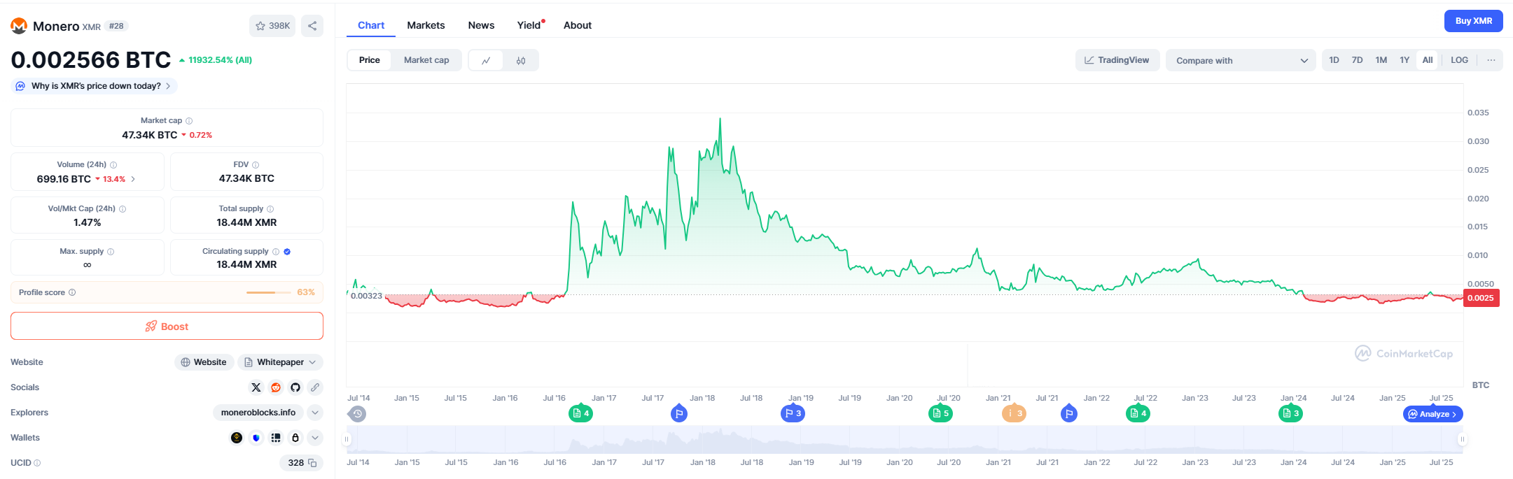 Принятие в "реальном мире": XMR остается одной из самых популярных криптовалют для онлайн-платежей в сегментах, где приватность критична, а также среди энтузиастов, ценящих свободу.