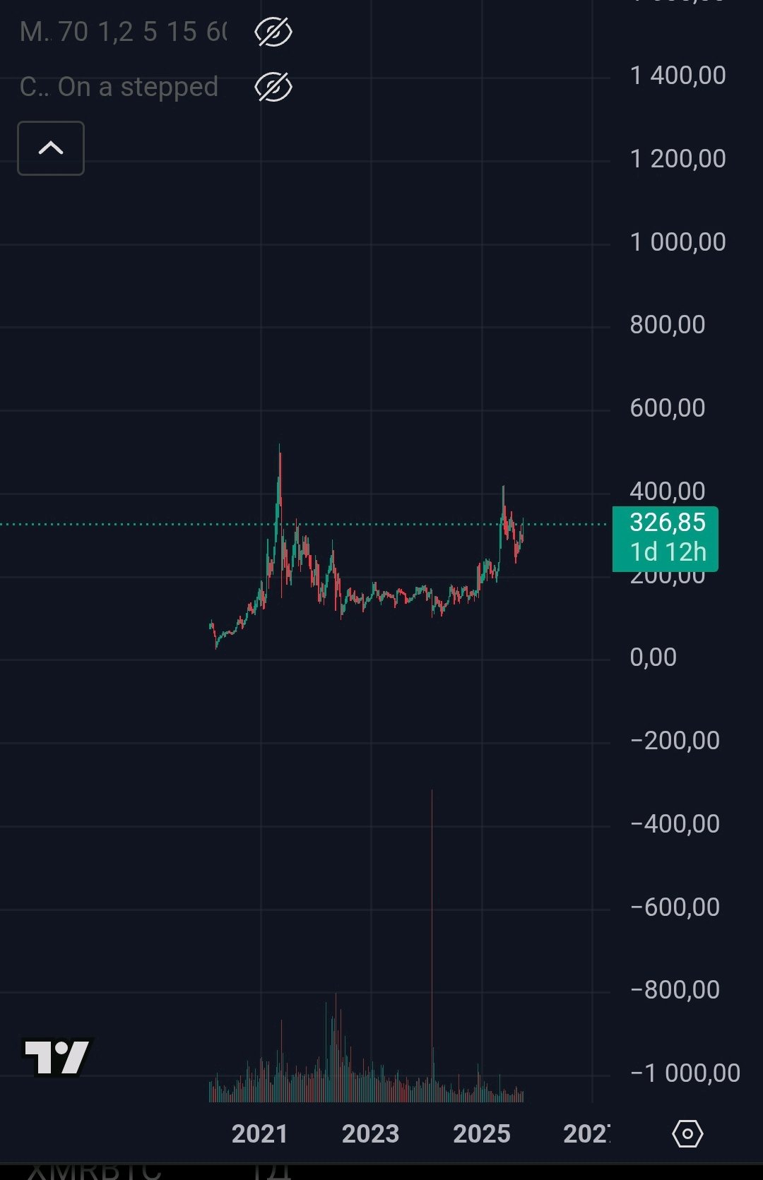 Прогноз по цене: В этом сценарии XMR может показать мощный рост, обновив свой исторический максимум (около $500). Цели могут находиться в диапазоне $600 - $800 и выше, так как она станет одним из немногих рабочих инструментов для приватных транзакций.
