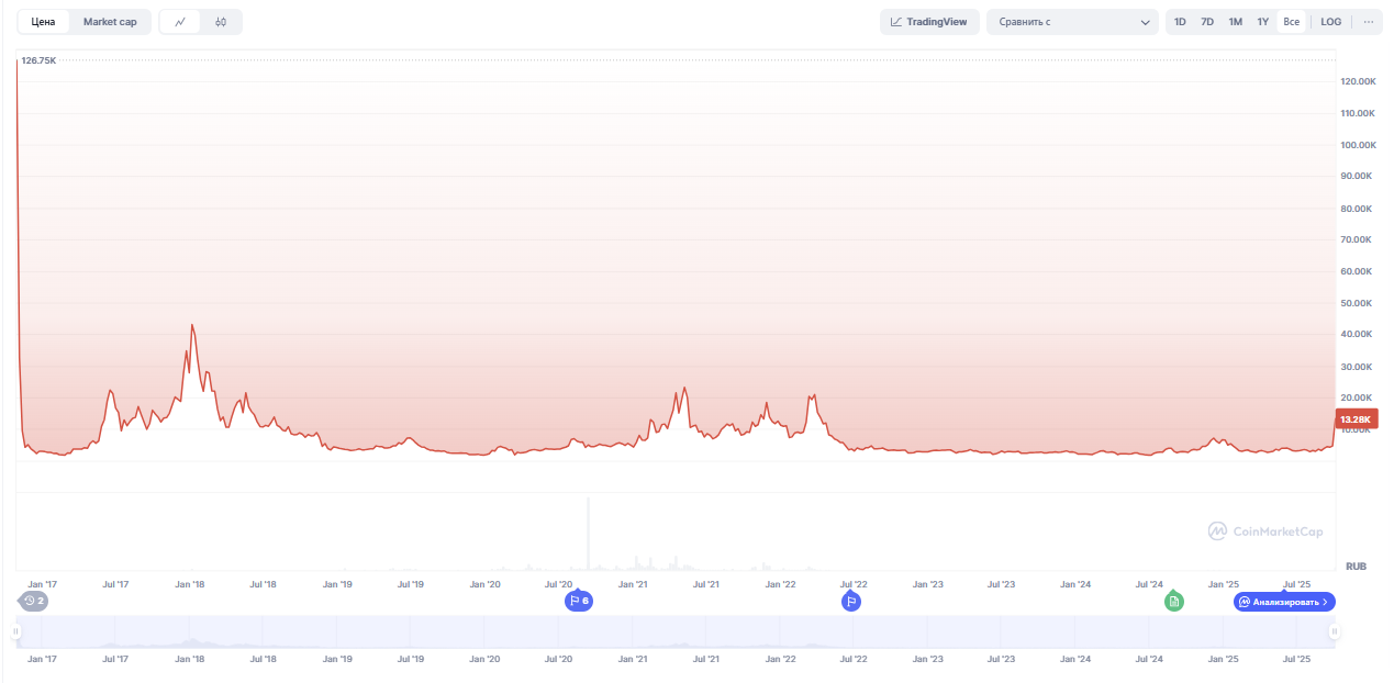 >>1296138 А тебе 3 икса мало? Некоторые за это время вообще исчезли. 8 лет назад, в 2017 году, цена была 10-421. Смотря когда ты купил. Купил по 10 в январе 2017 - имеешь 30 иксов. Купил по 421 в декабре 2017 - ты в минусе. Рыночек.