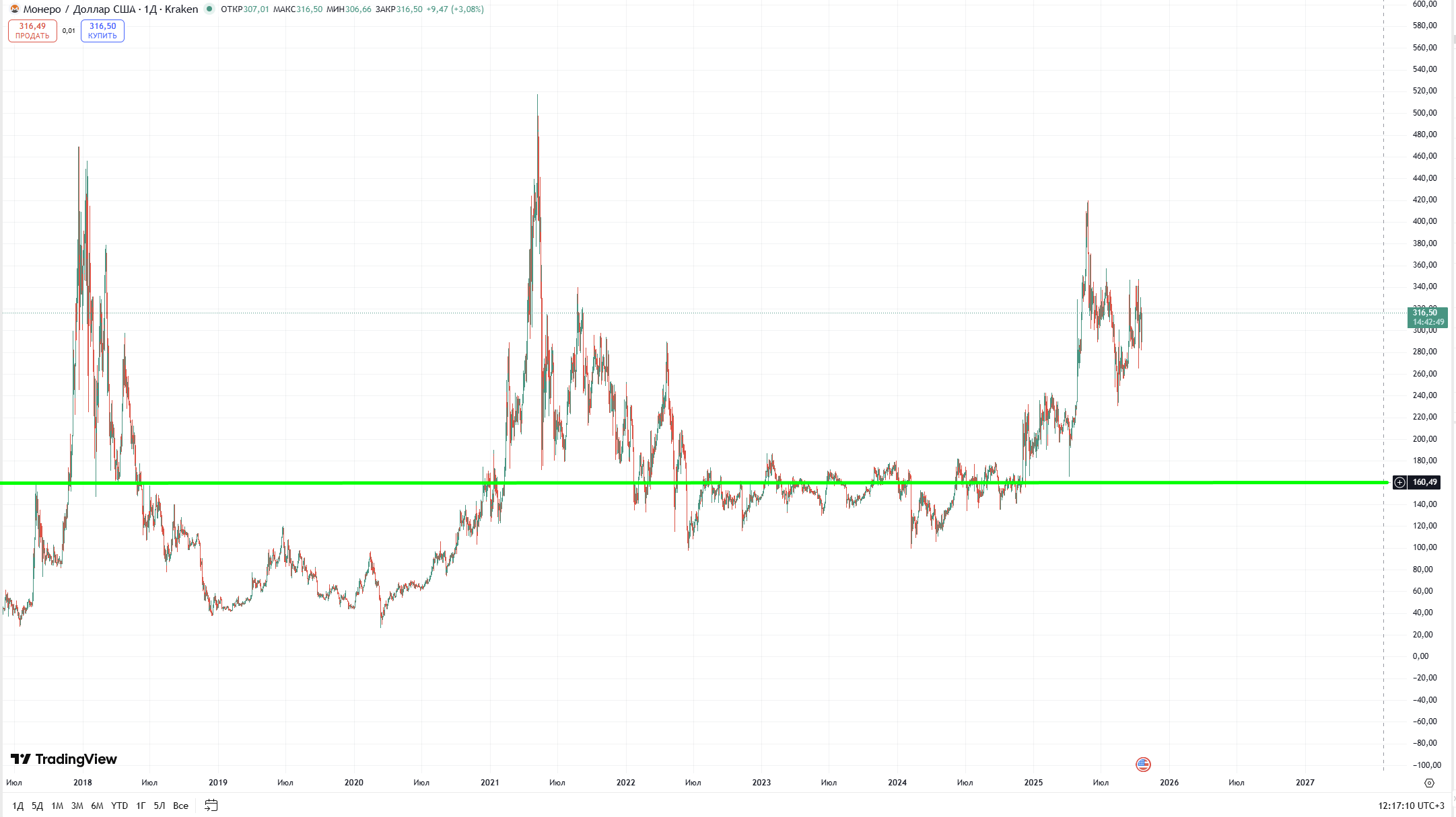 Вывод: В случае позитивного сценария для рынка и отсутствия катастрофических регуляторных действий, XMR имеет все шансы значительно вырасти в цене, возможно, до $500-700. Однако инвестор должен четко осознавать уникальный риск полного исключения из легальной биржевой экосистемы, что приведет к резкому обвалу. Это актив для тех, кто глубоко верит в необходимость финансовой приватности и готов пережить высочайшую волатильность.