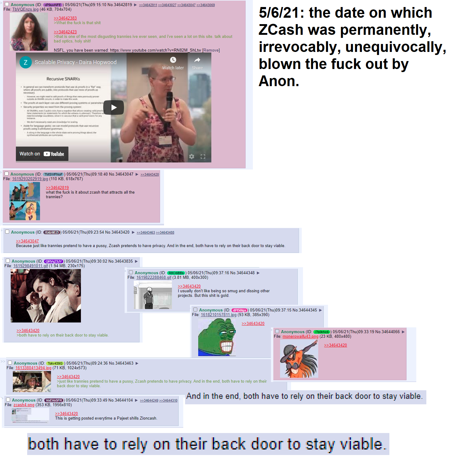 >>1313089 >Продавайте этот Монеро. Проект скоро умрет >Время zcash Лол, пидорашке выше кучу пруфов насыпали, что FEDcoin буквально создавался со встроенными бэкдорами, чтобы сливать данные globohomo, о чём сами разработчики признавались + у них кураторы из Белого Дома, а пидорашка всё не унимается, и продолжает гнать в чужом треде свою позорную пропаганду.
