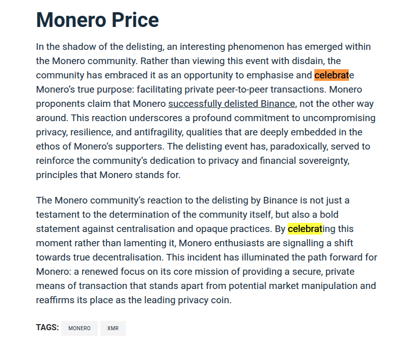 >>1313323 >делистинг ПРАЗДНУЕТСЯ сообществом Сообщество монеры это токсичная квир-тусовочка религиозных фанатиков, во всяких телеграмм группах по монеро тупо банят за любое инакомыслие и неудобные вопросики. Ты видишь что они "празднуют" лишь потому что всех кого напрягают делисты и проблемы ликвидности - банят.
