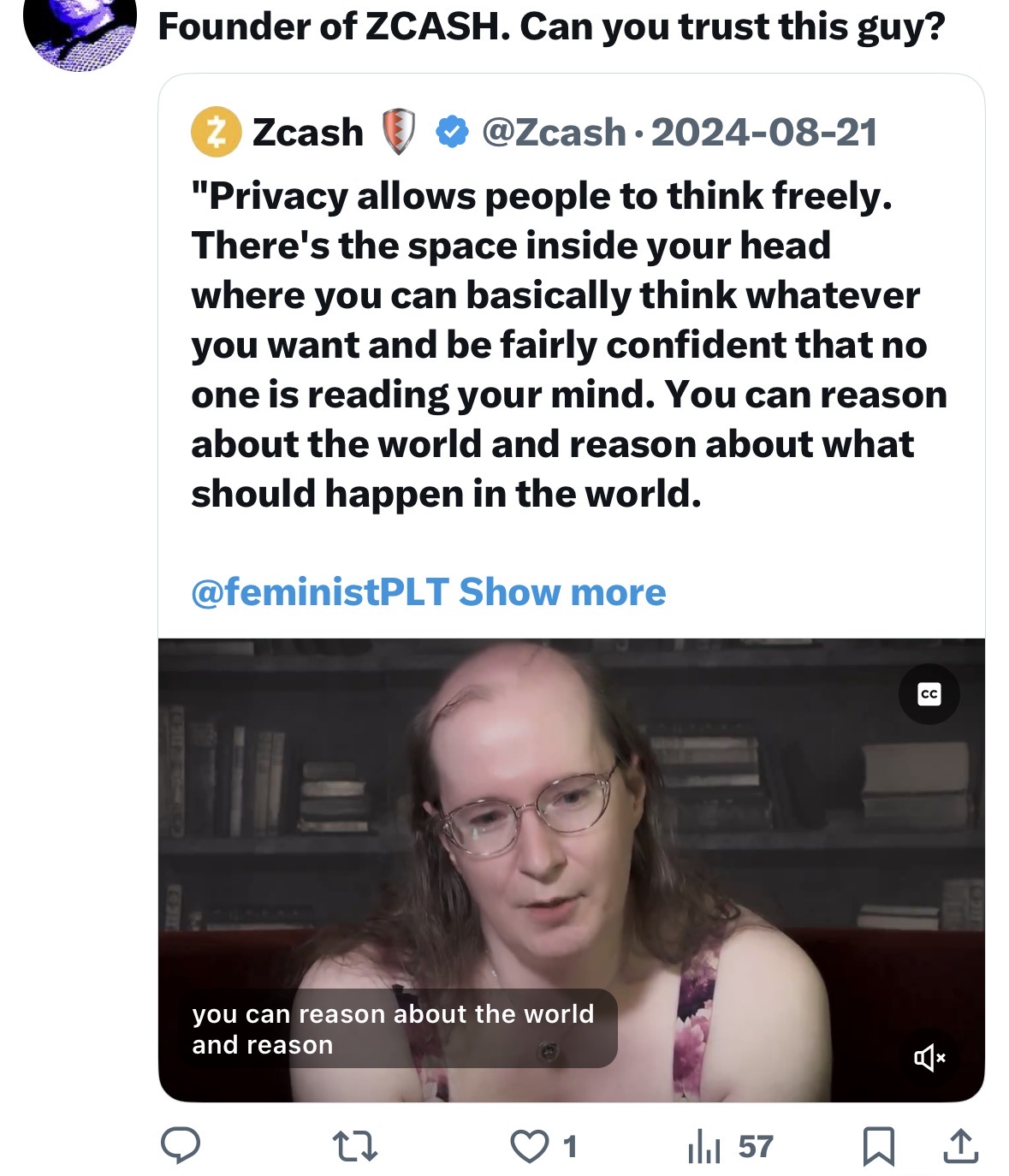 >>1308242 Так, ну то есть ты считаешь, что курс зкэша останется таким же, может даже ещё и вырастет. А вот монеро потихоньку пойдёт на дно. И все будут пользоваться зкэшем, на всех kyc и non-kyc обменниках, в даркнете. И даже стол и ношенные трусы будут продавать скоро за zcash. Просто отпишись: "да", чтобы я заскринил.