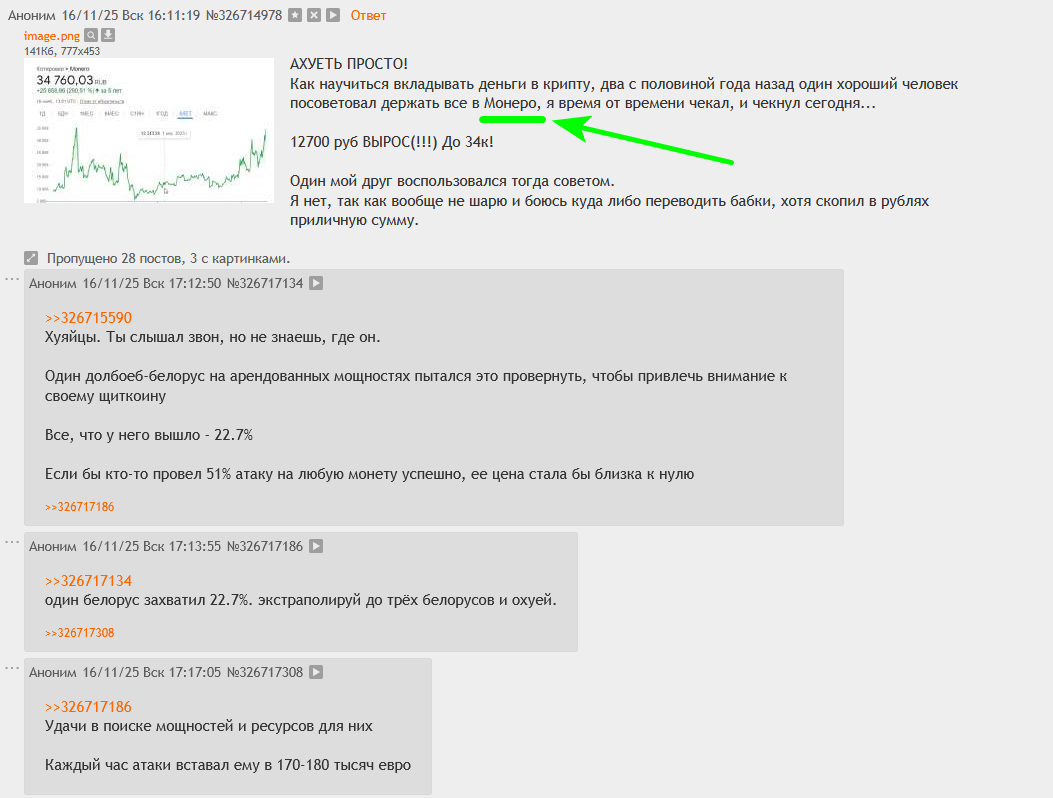 Блять, откуда вы берётесь, у фактического знания материала 0, сидите рассказываете то, о чём вы вообще не знаете. Абстрактные торчки. Абстрактные хакеры. Между тем монеро в топ-20 по капе. Спустя 11 лет от создания.
