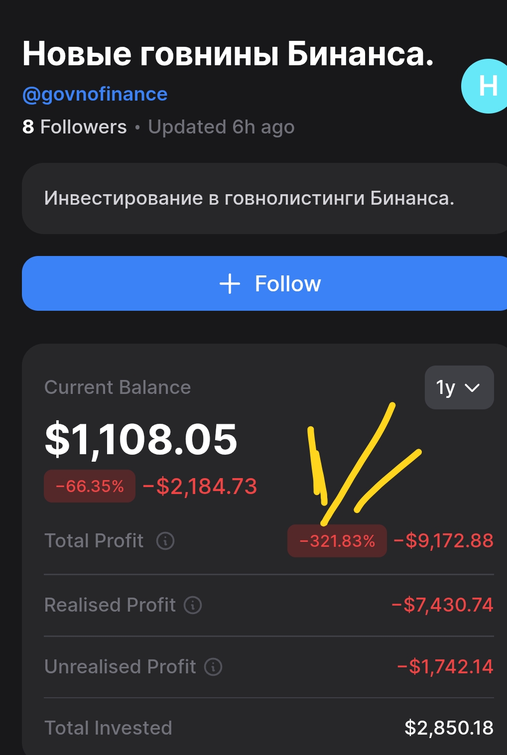 Я реально начинаю думать что все скамнутые мамонты заслуживают этого, каким надо быть долбоебос чтобы инвестировать 40к долларов исходя из КАРТИНОК В ИНТЕРНЕТЕ, иметь -50% и все равно уверять всех в том что ты не обосрался