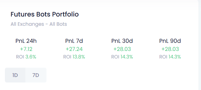 Как тебе идея заработать 150% к депозиту за 3 дня? Да риски. Но если подгадать фазу рынка и активы, это делается настолько быстро что вытаскиваешь свой депозит и торгуешь только на профит. А меж тем такой бот существует и будет доступен для установки тупо в 1 клик. Или вот пример - и в лонг и в шорт на одном субаккаунте. На копеечку