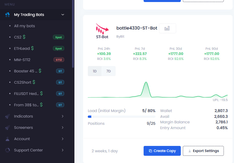 >>1299799 Время обновить статистику торговли спотового бота в лонг. Ещё 1% к депозиту за сутки и 119 закрытых сделок со старта бота.