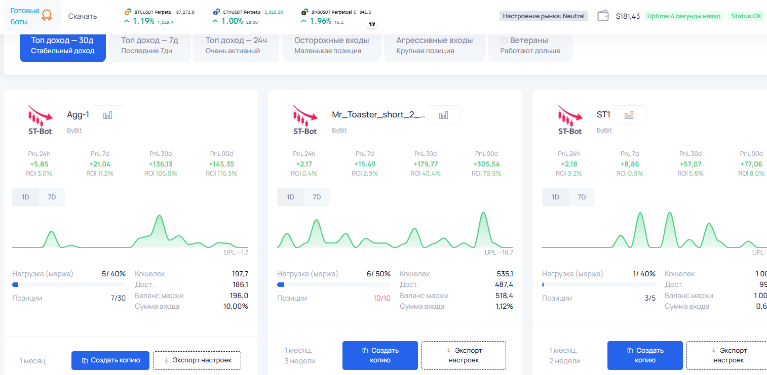 >>1307094 Вчера был запущен каталог готовых шаблонов от реальных пользователей. Запуск своего алготрейдинг бота на чужих настройках буквально в два клика.