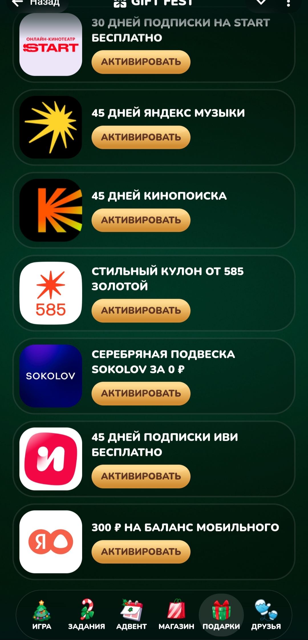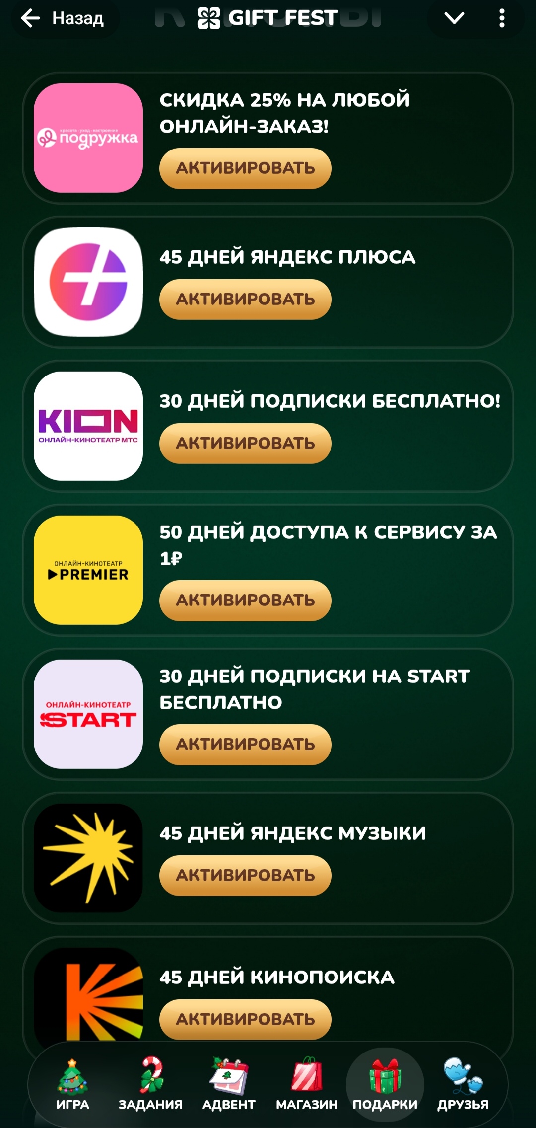 Здрав буди, анонче) Наткнулся недавно, проект для создания новогоднего настроения - за прохождение уровней дают промокоды, билеты на участие в розыгрыше крипты, акций крупных кампаний, подарков в Telegram и много всего такого) Решил из спортивного интереса дойти до 100 уровня, присоединяйся: https://t.me/giftfest_bot/app?startapp=UkM9MDAwMDAwVFdjeG4mUIM9aW52aXRIX2ZyaWVuZA%3D%3D
