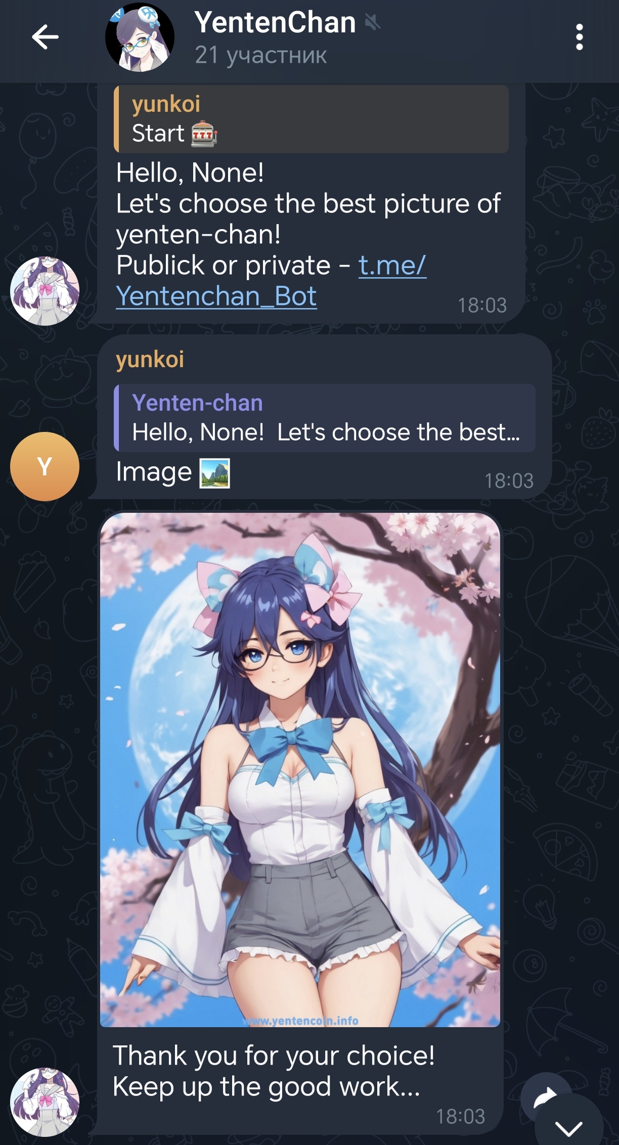 Будем благодарны за голосование за лучшие Yenten тян картинки, может кто и для себя не скучные картинки подберёт Бот в телеге: @Yentenchan_Bot P.s. попробуем порекламировать монету потом среди китайцев
