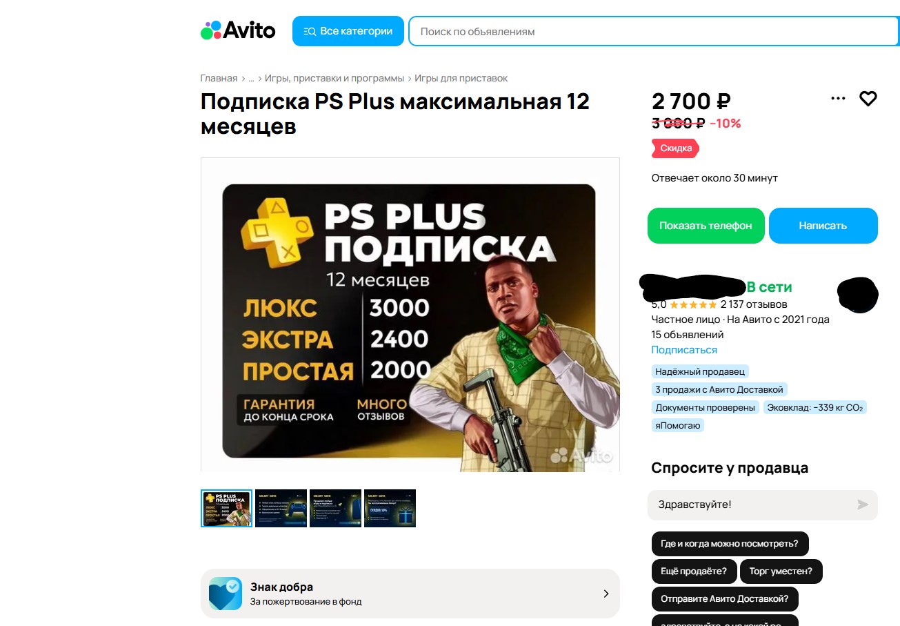 А если они на мой акк закидывают подписку то это как работает то? Тоже интересует эта тема ибо собираюсь покупать пс+ и разница между Авито (3к) и другими площадками 10-11к очень ощутима и что выбрать и как быть?