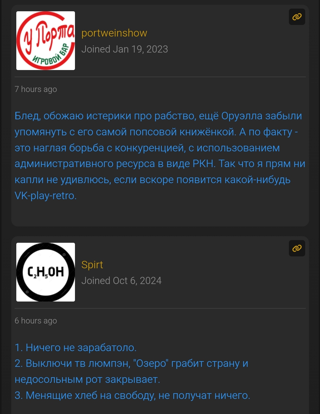 Тут есть те, кто выбивает ретроачивки? Короче, раньше выбивал на компе, но потом купил Анберник, чтобы лампово гамать с ачивочками, лёжа в кроватке. И все было заебись, пока известные дауны не блокнули клаудфлaре, который использует сайт. И это, очевидно, поставило под угрозу все мои результаты на сайте, ибо вчера только под ВэПэN зайти мог. Ладно на компе, там можно какой-нибудь батник с гитхаба накатить, хотя и он в процессе выбивания какой-нибудь сложной ачивки может отвалиться, но портативка превратилась бы в тыкву, ибо без ачивок мне играть в ретро уже не интересно. Слава б-гу на ресурсе много людей из россии, и админы подкрутили, чтоб все без пердолинга работало, но я охуел с персонажей с пикч. При чем это не боты, у людей вполне приличная карьера на сайте есть