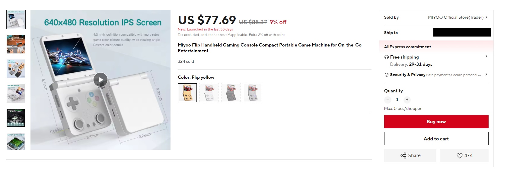 > Today December 30th at 4pm Beijing time, the Miyoo Flip will go on sale in all colors. We hope that this first batch will be enough to satisfy the demand. We will also release batches faster than in previous occasions.Happy New Year 🎅